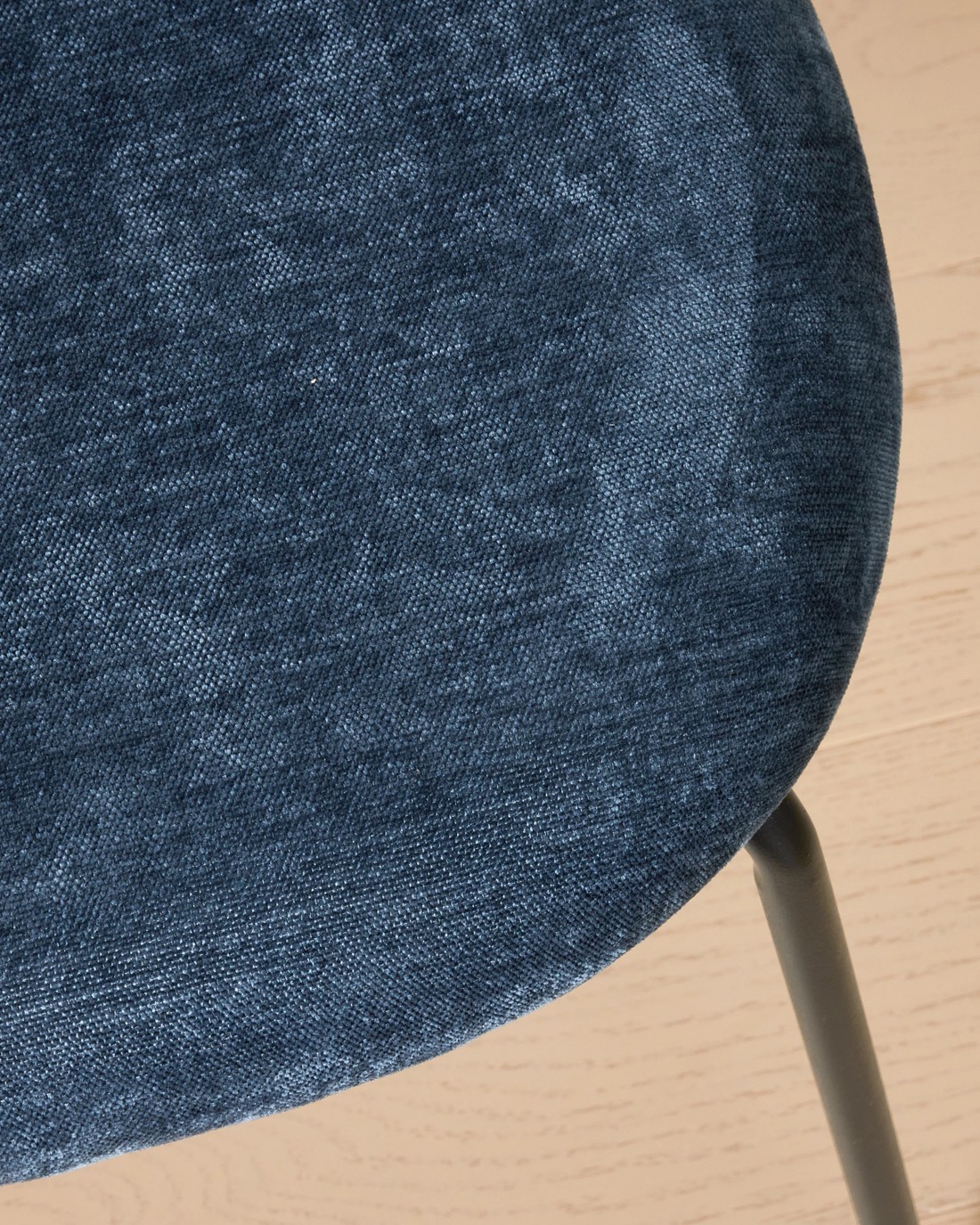 - It has blue chenille upholstering