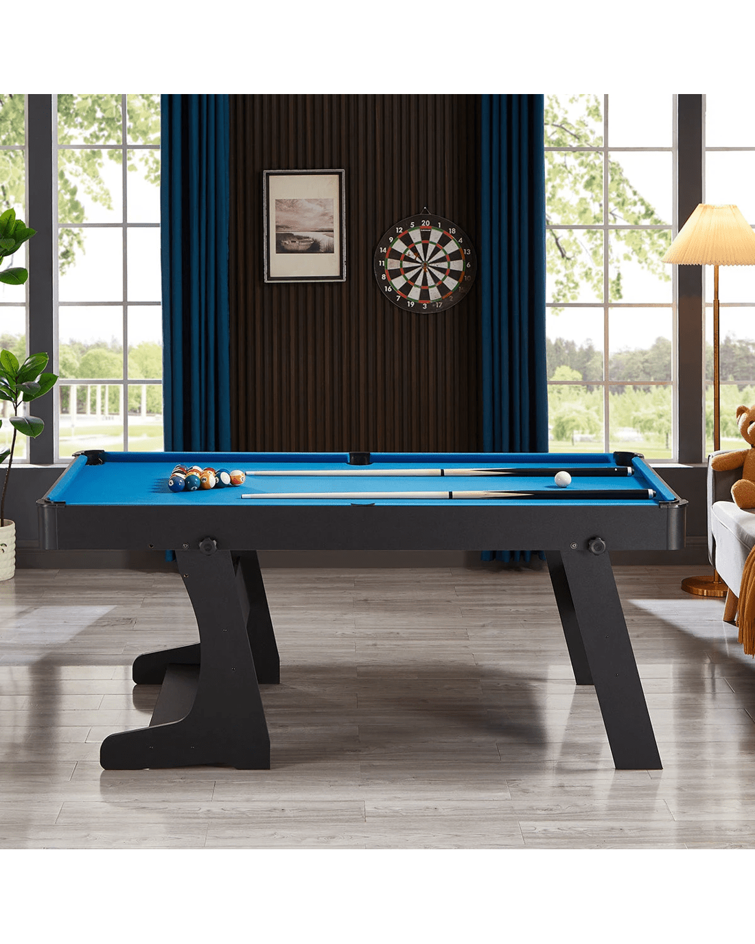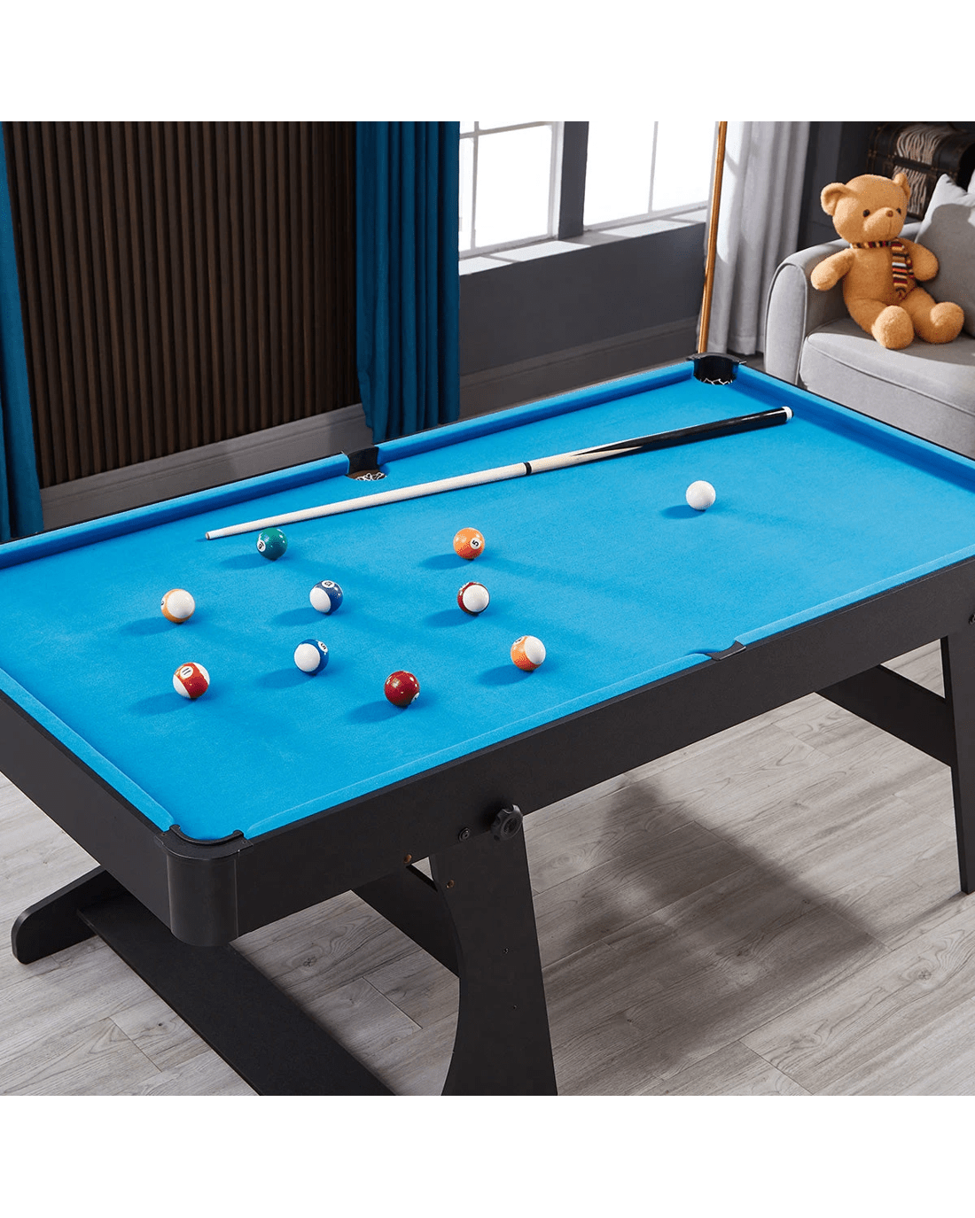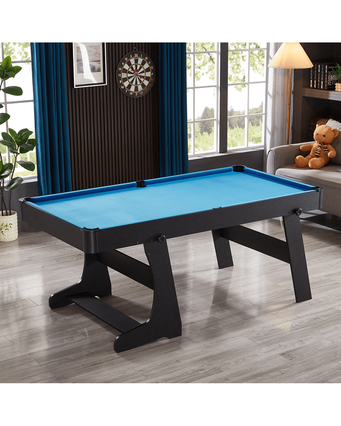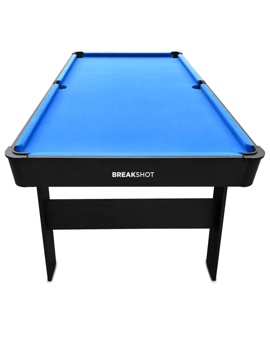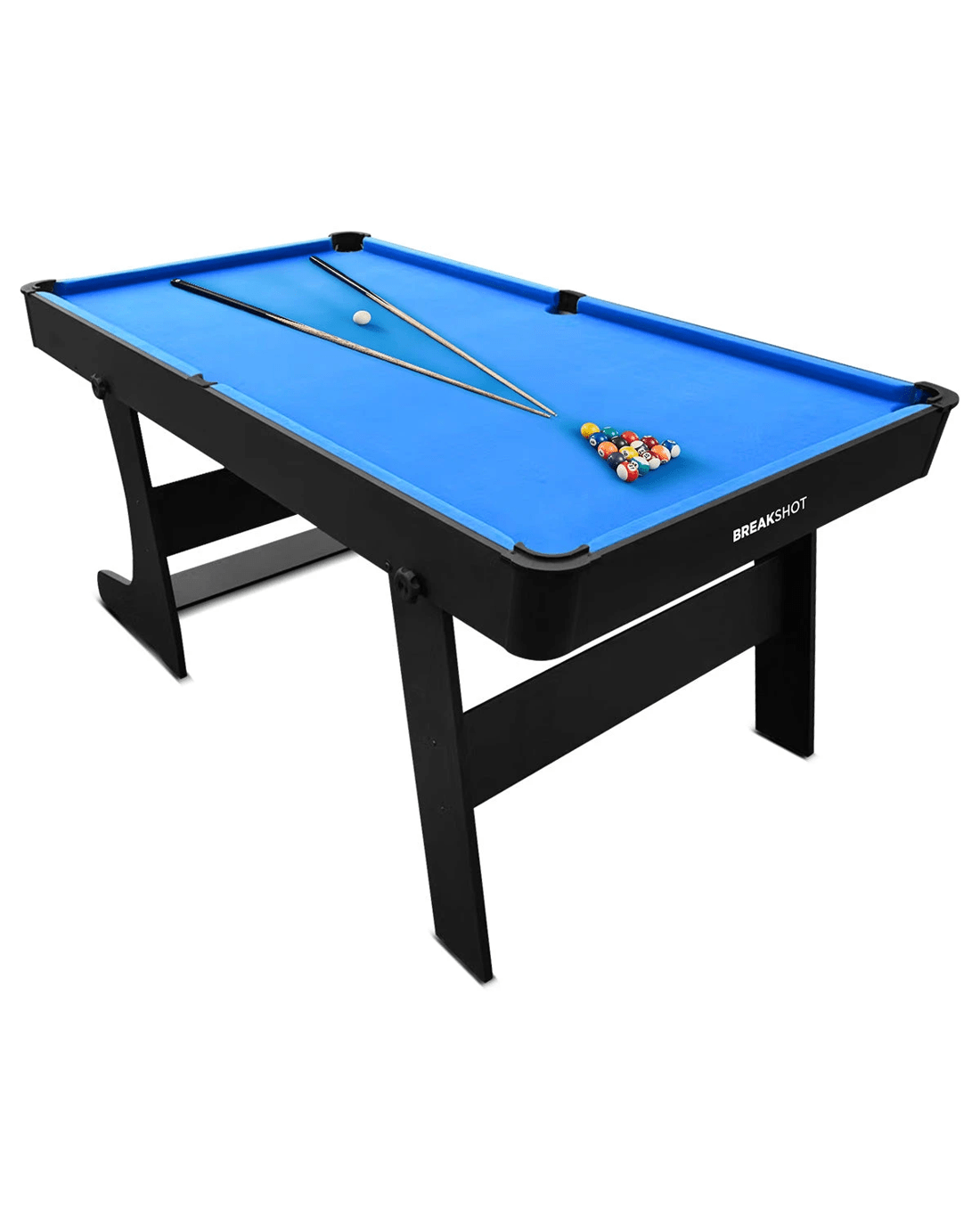 Transform any space into a game room with the BreakShot Fold Up 6ft Pool Table, designed for convenience without sacrificing quality. This compact, foldable table offers an authentic playing experience with a smooth surface, solid construction and all the accessories.