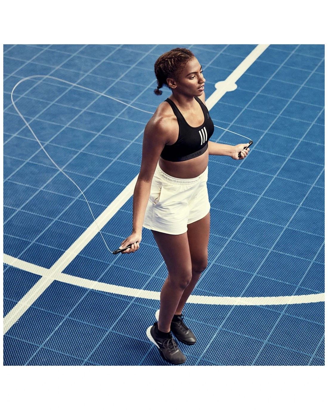The Adidas Skipping Rope is designed for building cardiorespiratory endurance, foot speed, and overall coordination. Perfect for fitness enthusiasts, it offers reliable performance for a variety of workout routines. Constructed from durably moulded plastic, the handles feature a textured bottleneck design for a stronger, more comfortable grip during vigorous skipping sessions. The steel wire rope is rubber-coated and braided, ensuring smooth rotations and excellent control for advanced users engaged in boxing or general fitness training. With a total length of 300 cm, the rope includes an easy adjustment system that allows quick, tool-free resizing to suit your height, providing a customised and secure fit for all users. Key Features: Endurance and Coordination Development: Built to help improve cardio endurance, foot speed, and overall coordination for more effective training. Ergonomic Handles for Better Grip: Moulded plastic handles with a textured pattern provide a stronger, more comfortable grip. High-Performance Rotational Speed: The steel wire rope ensures smooth, fast rotations ideal for intense workouts or boxing routines. Easy Length Adjustment: The 300 cm rope can be easily customised to your height without the need for cutting. Convenient Storage and Transport: Includes a drawstring mesh bag for easy carrying and storage. Specifications: Brand: Adidas Product Type: Fitness equipment Rope Length: 300 cm Adjustment System: Yes, tool-free Includes: 1 x Adidas Skipping Rope with a drawstring mesh carry bag