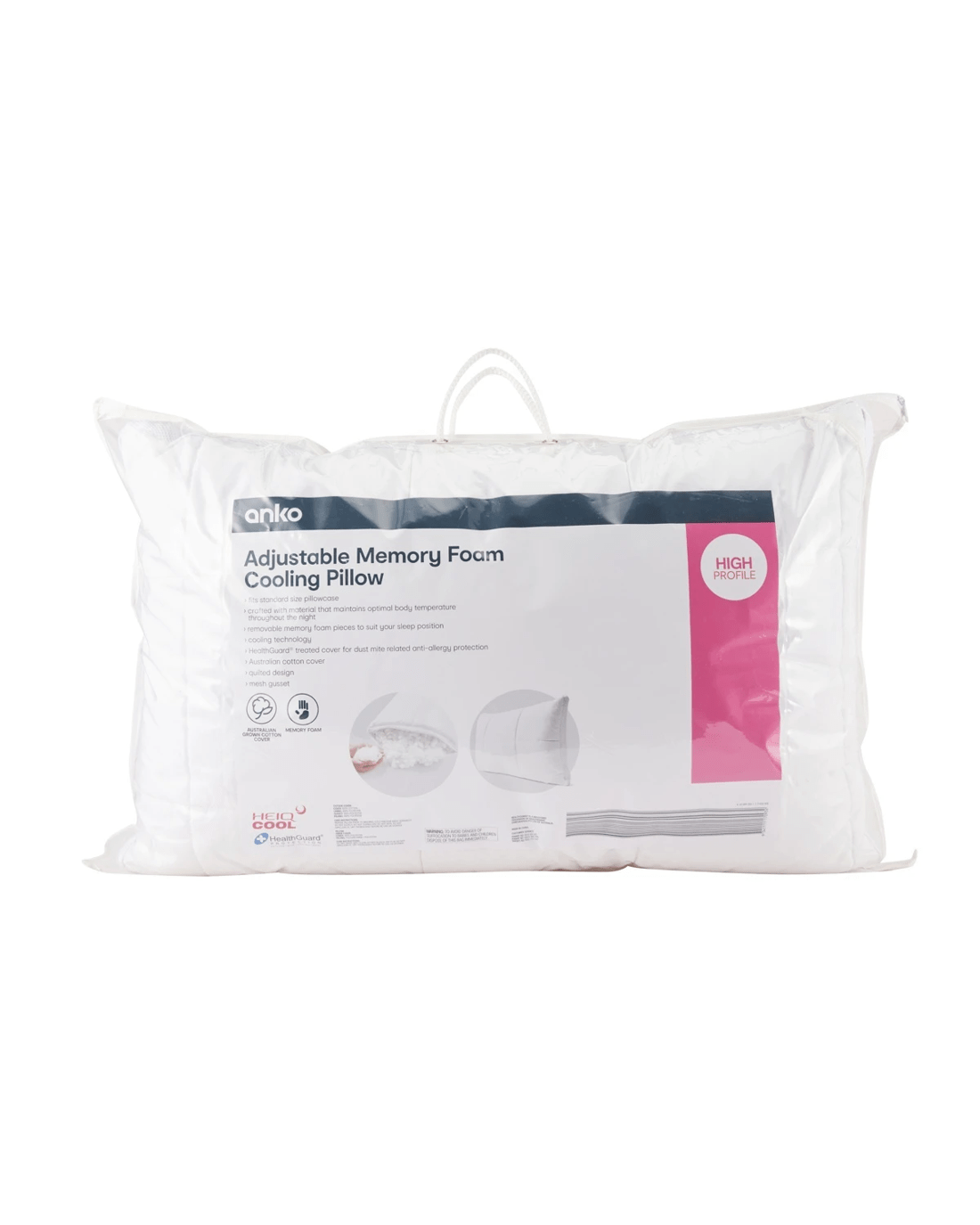 Adjustable Memory Foam Cooling Pillow - High Profile, White