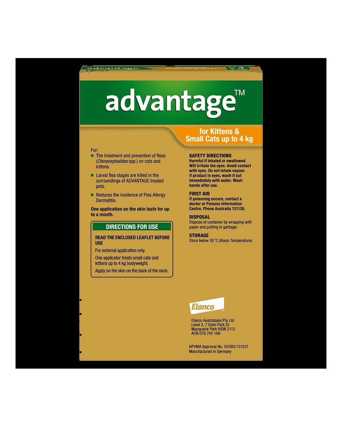 Sold by Pet StationAdvantage Flea Treatment For Cats 0-4kg Orange 1 Pack