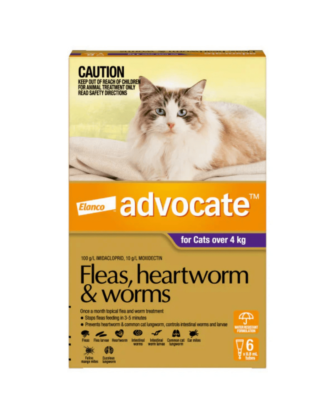About Advocate: Advocate provides broad-spectrum protection and fast-acting relief from fleas — killing adult fleas and larvae within 20 minutes of application to break the life cycle and prevent re-infestation. Used monthly, it also protects your cat from deadly heartworm disease, which has no safe treatment options once developed.