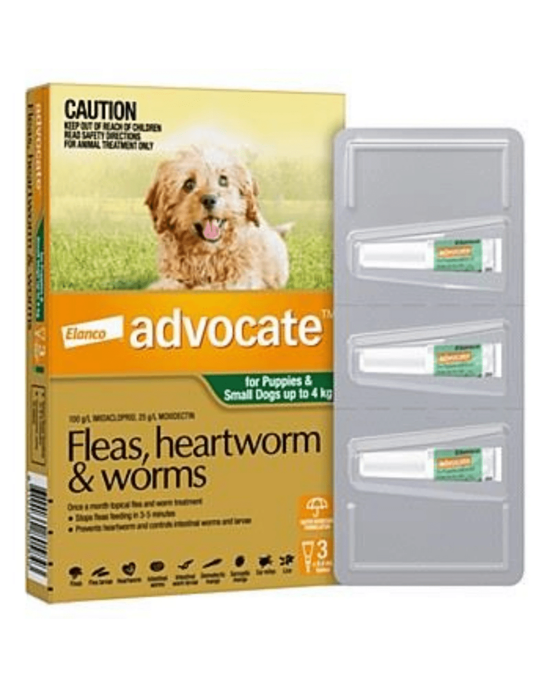 About Advocate: This fast-acting formula kills adult fleas and larvae within 20 minutes of application and continues protecting for a full month. When applied regularly, it also prevents heartworm disease, which can cause serious heart and lung damage if left untreated.