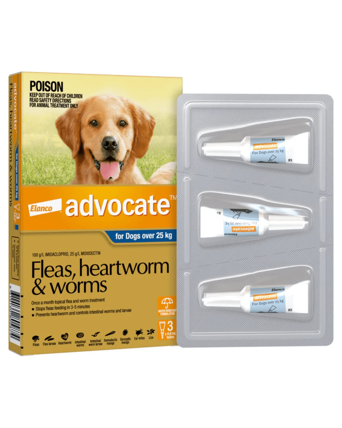 About Advocate: This fast-acting formula kills adult fleas and larvae within 20 minutes of application and continues protecting for a full month. When applied regularly, it also prevents heartworm disease, which can cause serious heart and lung damage if left untreated.