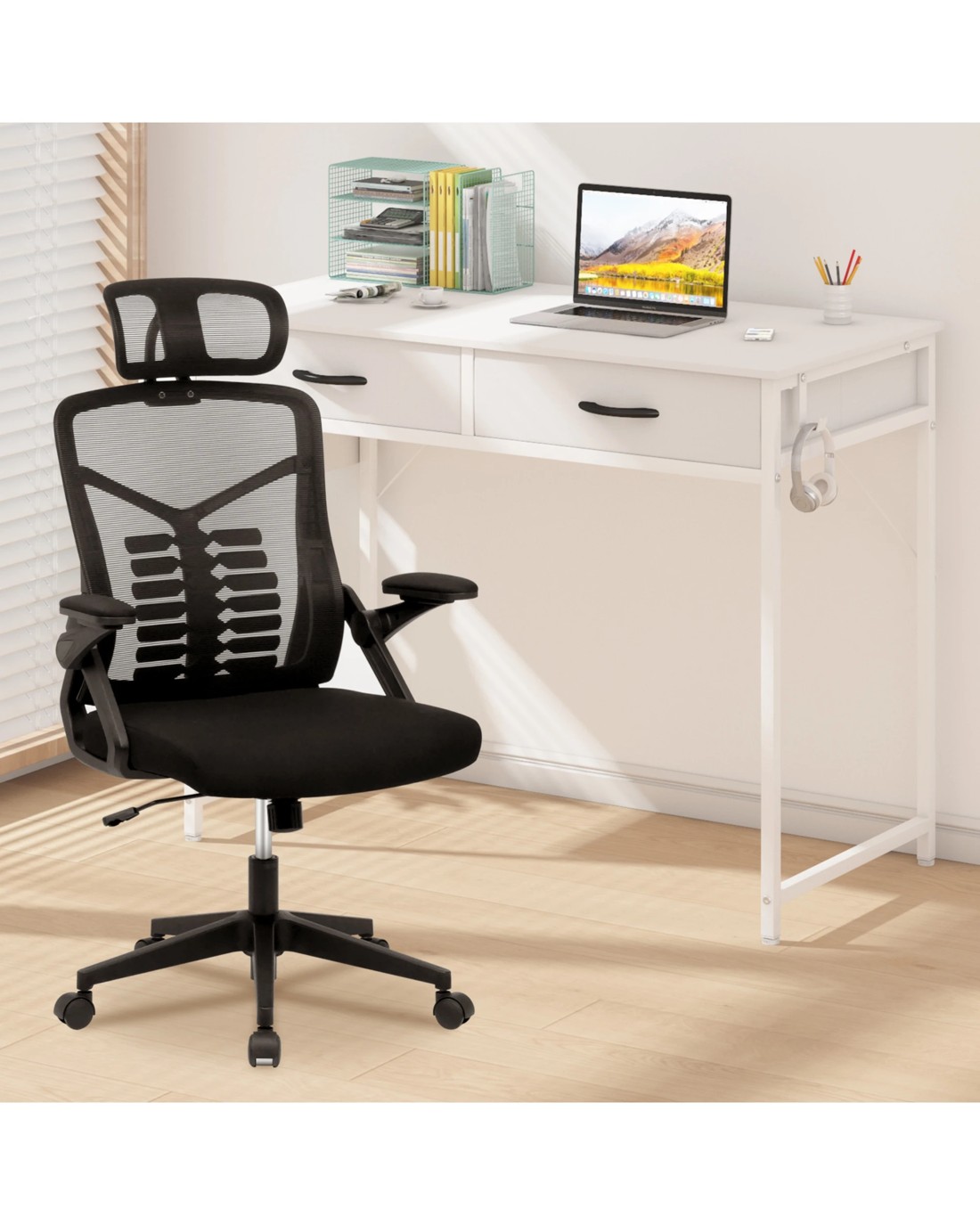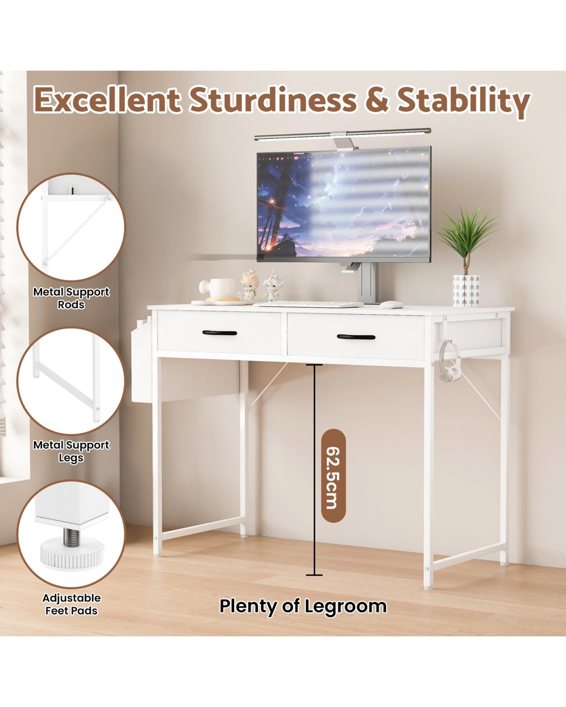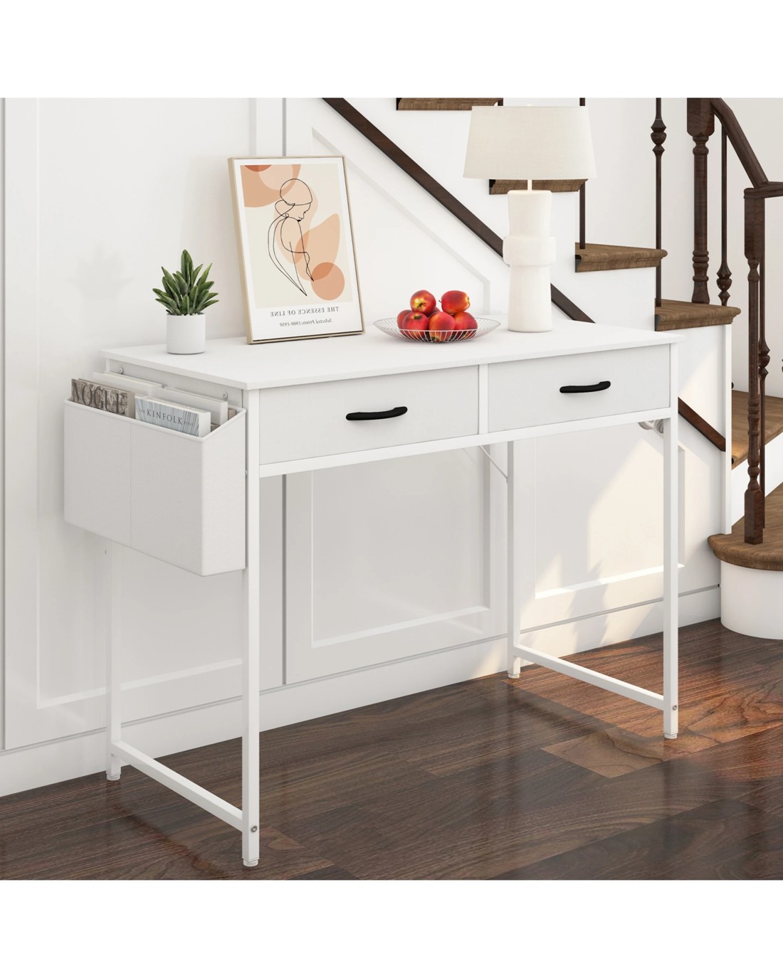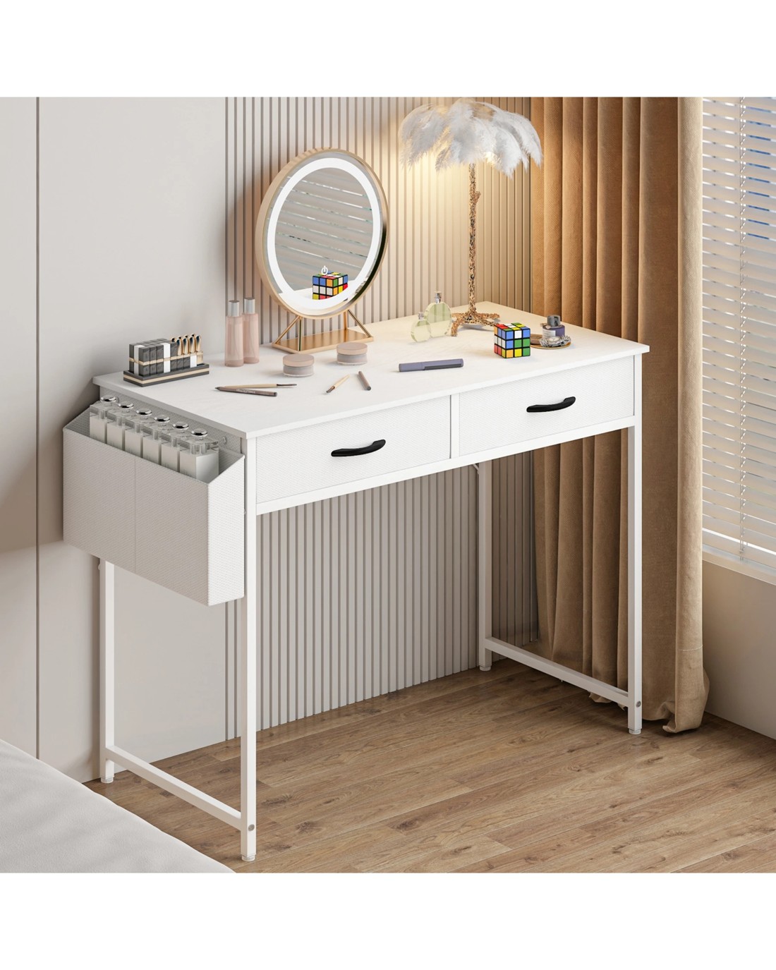 Sold by AdvwinAdvwin 100cm Small Desk With 2 Drawers And Storage Bag Makeup Vanity Desk White