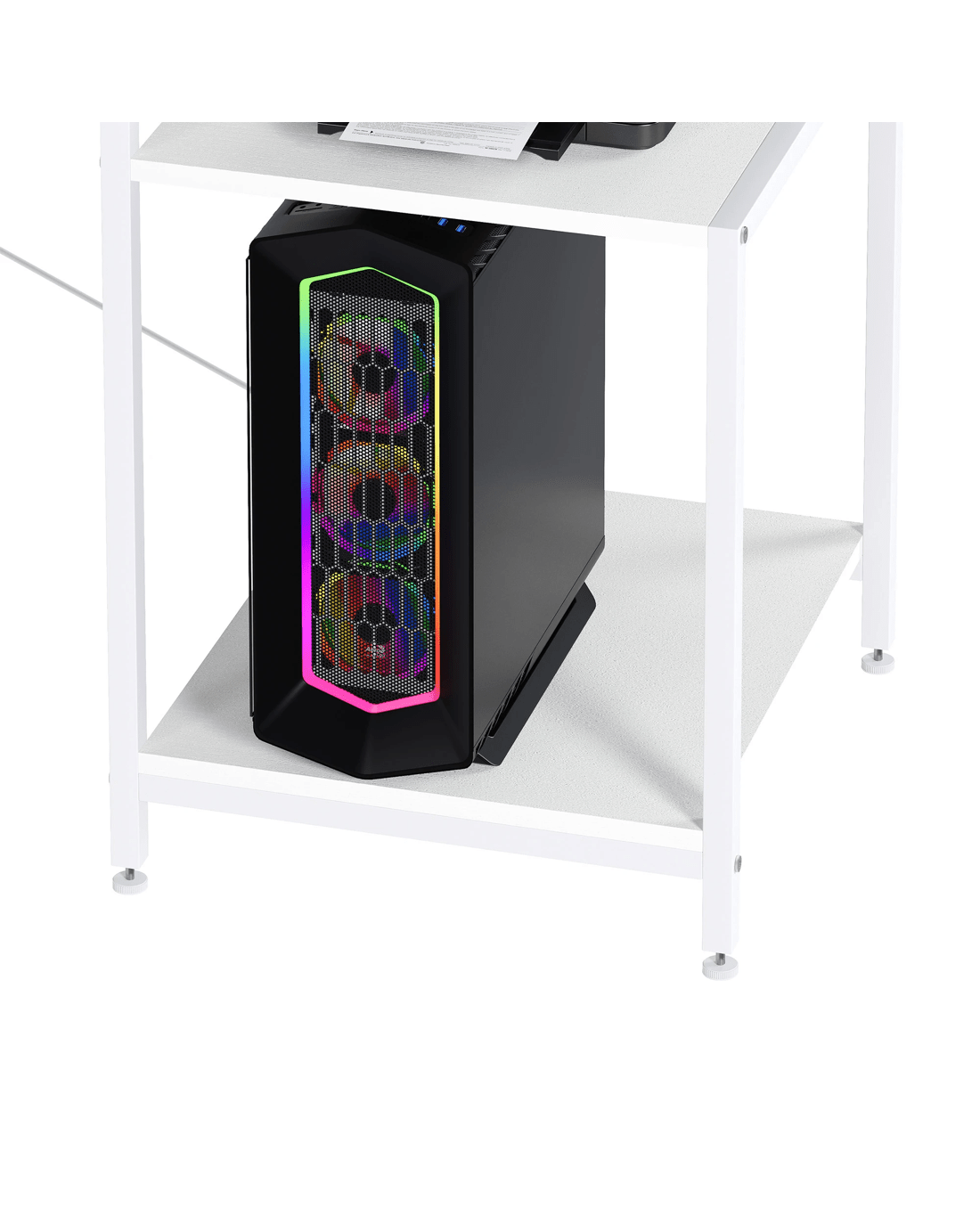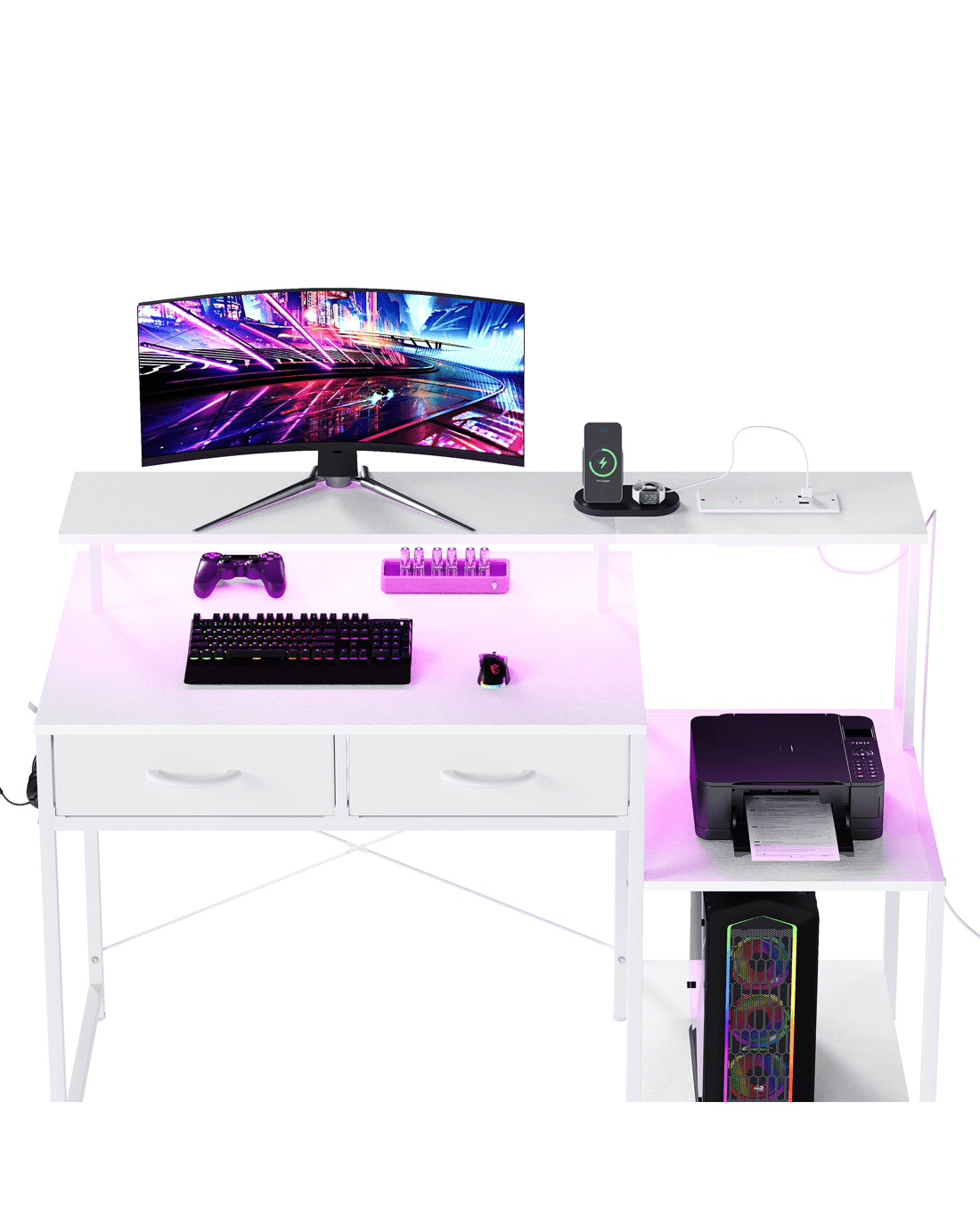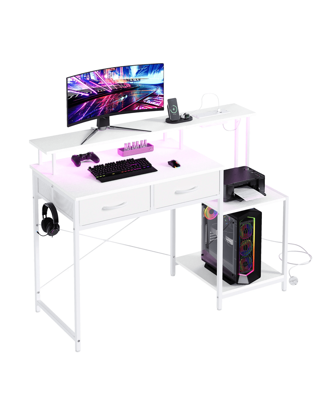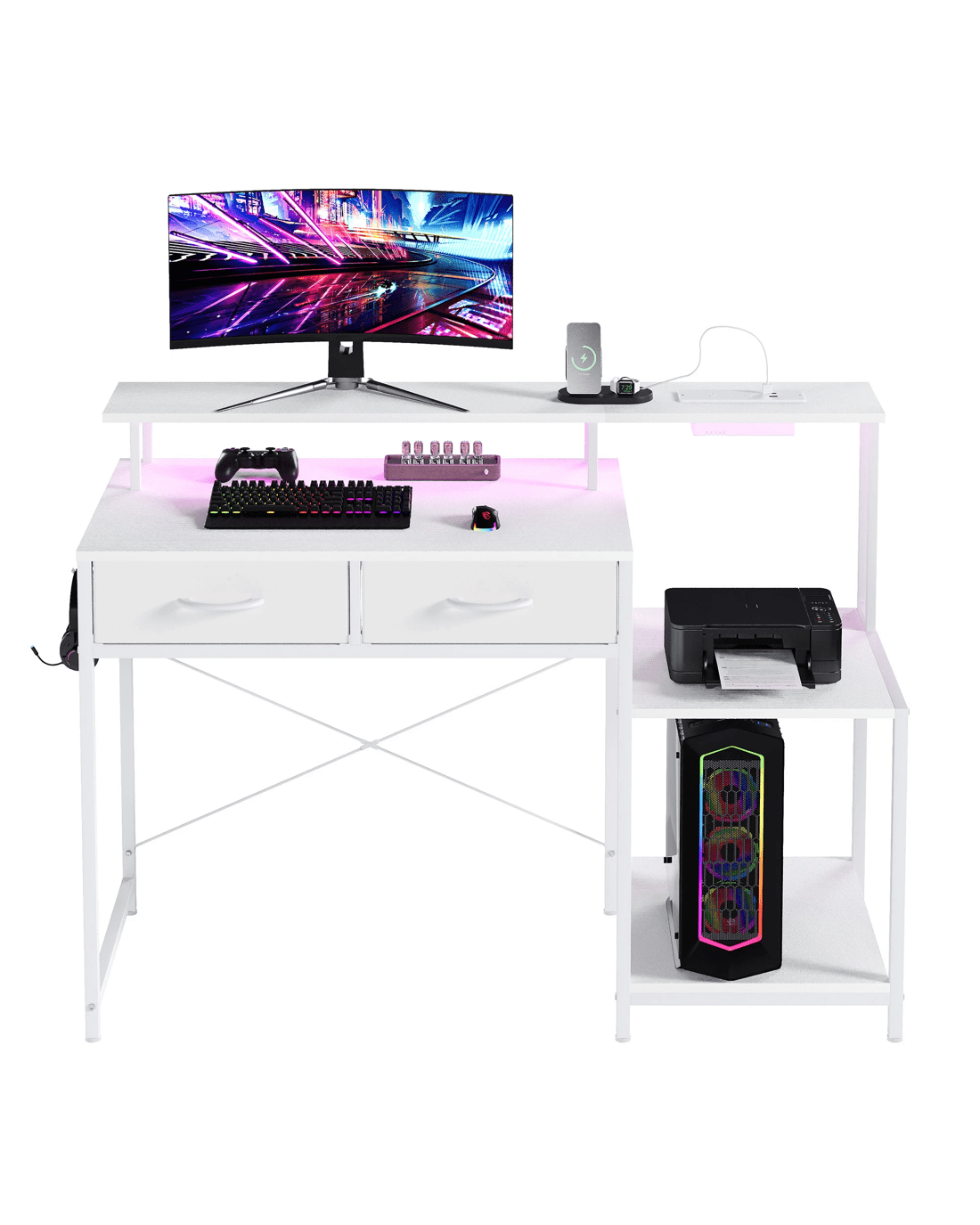 Sold by AdvwinAdvwin 120cm Gaming Desk With Led Lights Power Outlets Reversible Printer Storage Shelf Computer Desk White