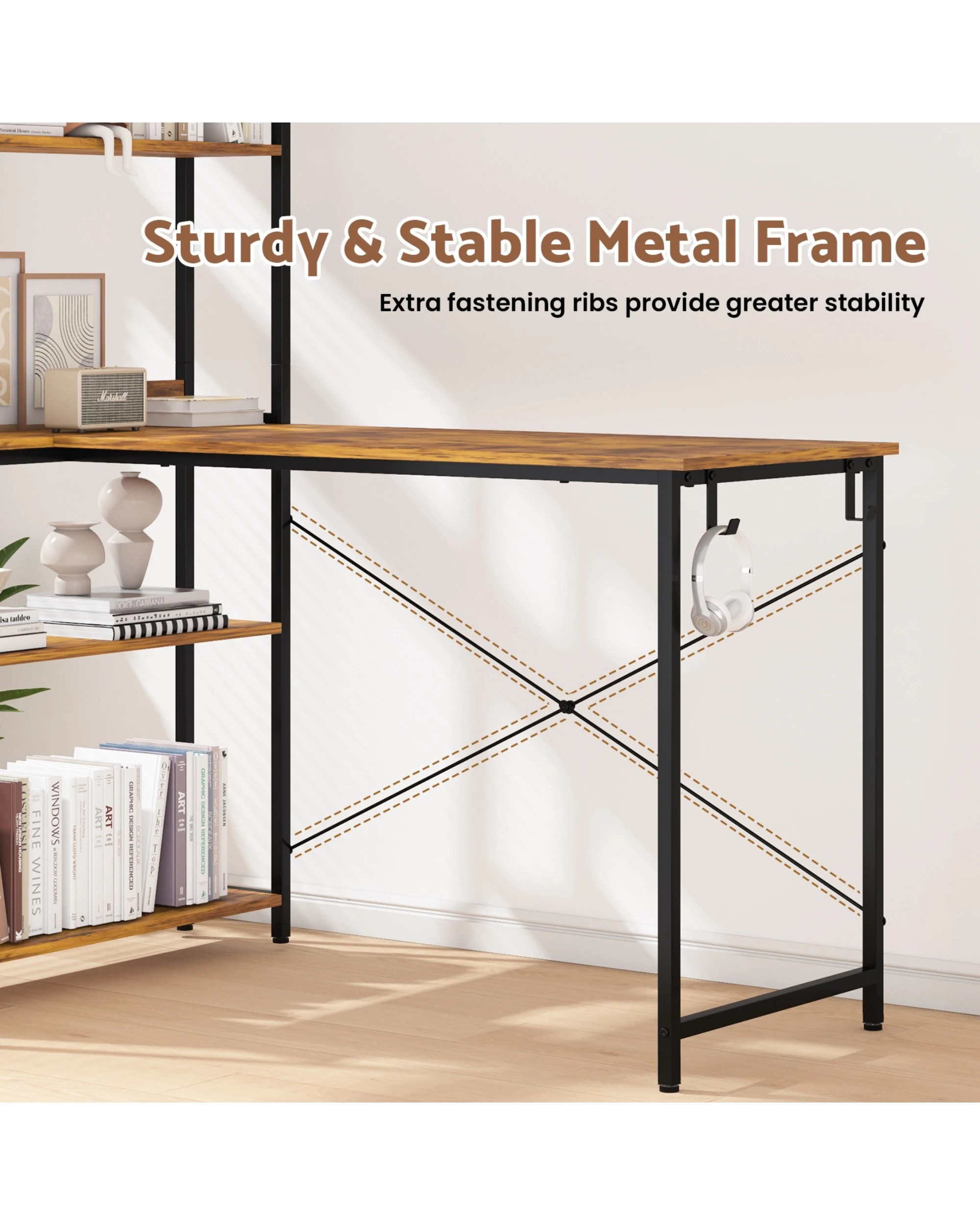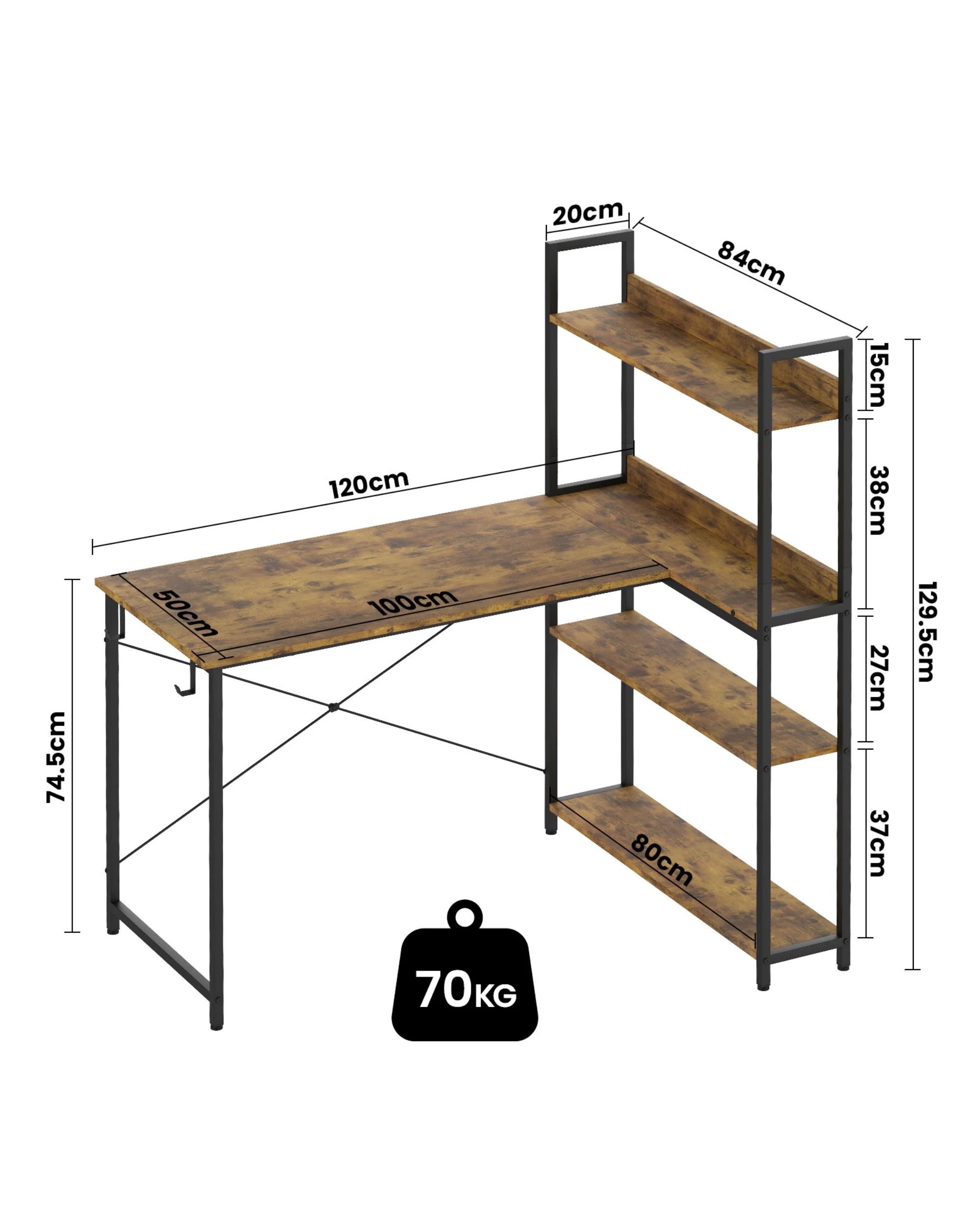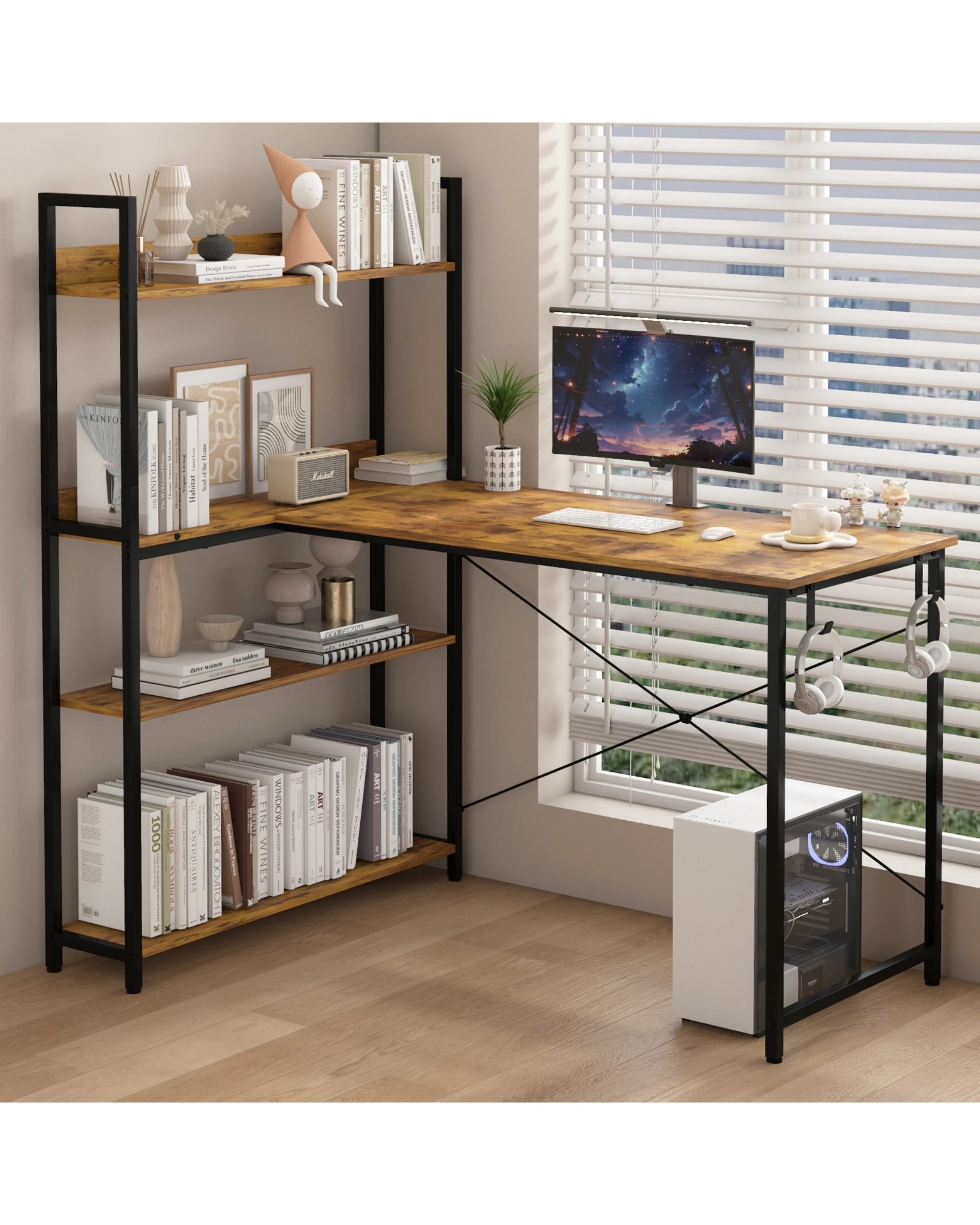 Advwin 120cm L Shaped Computer Desk With Reversible Storage Shelves Corner Desk Walnut