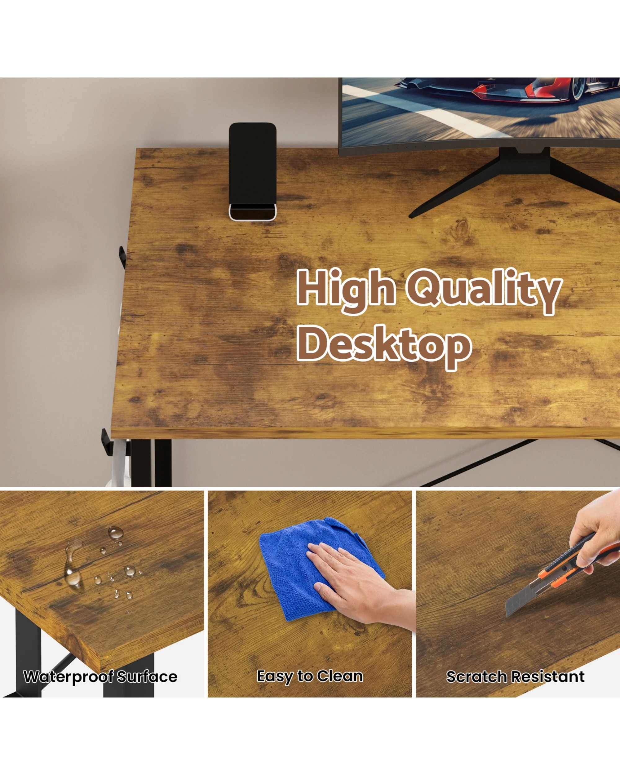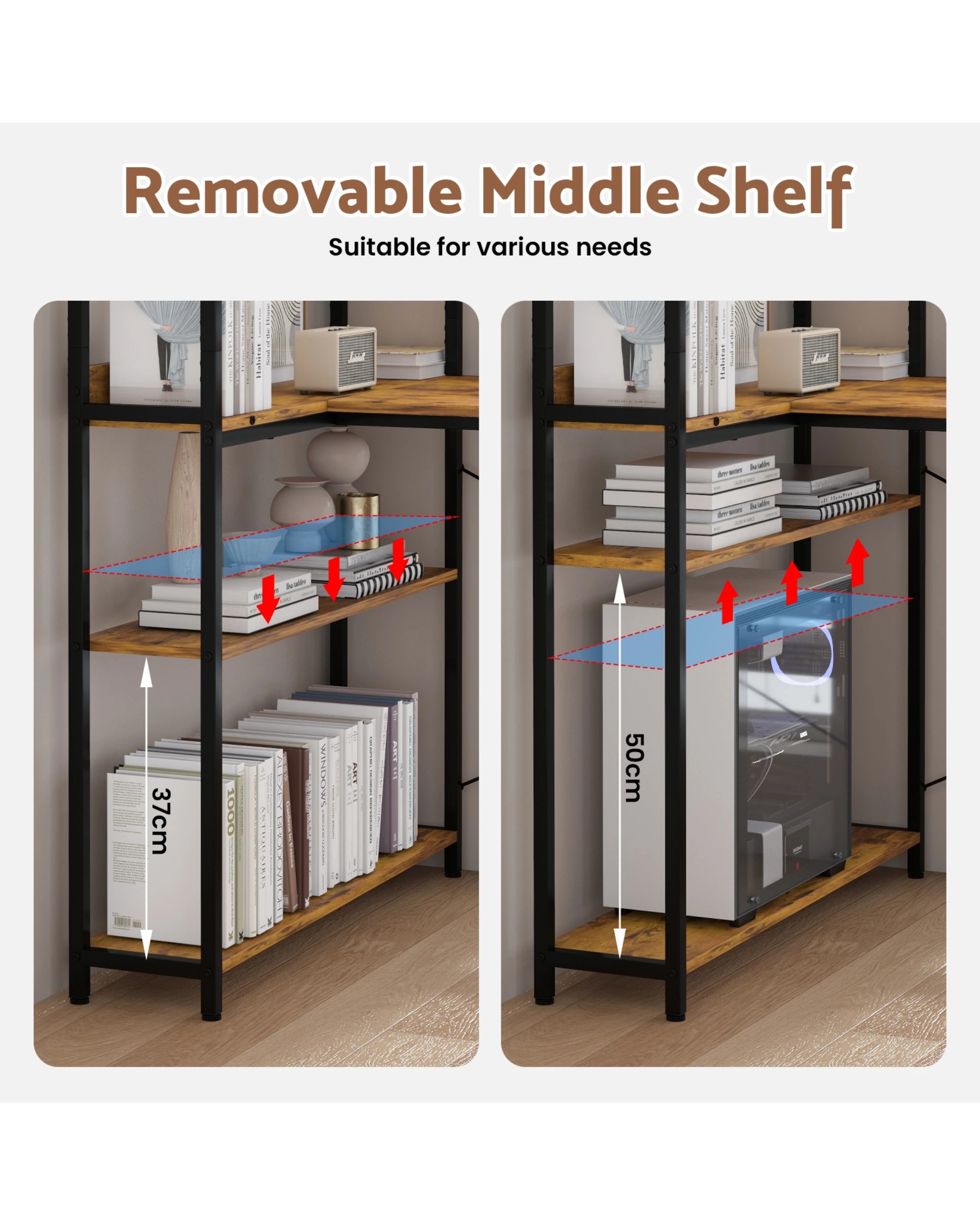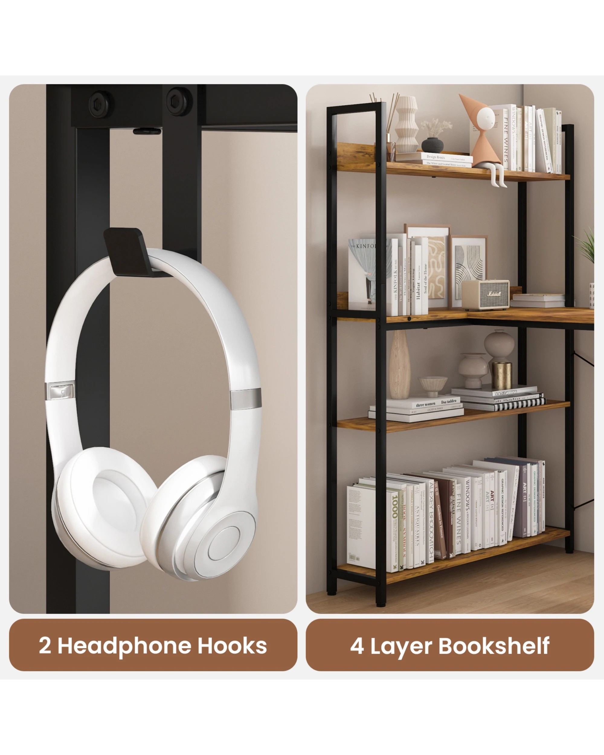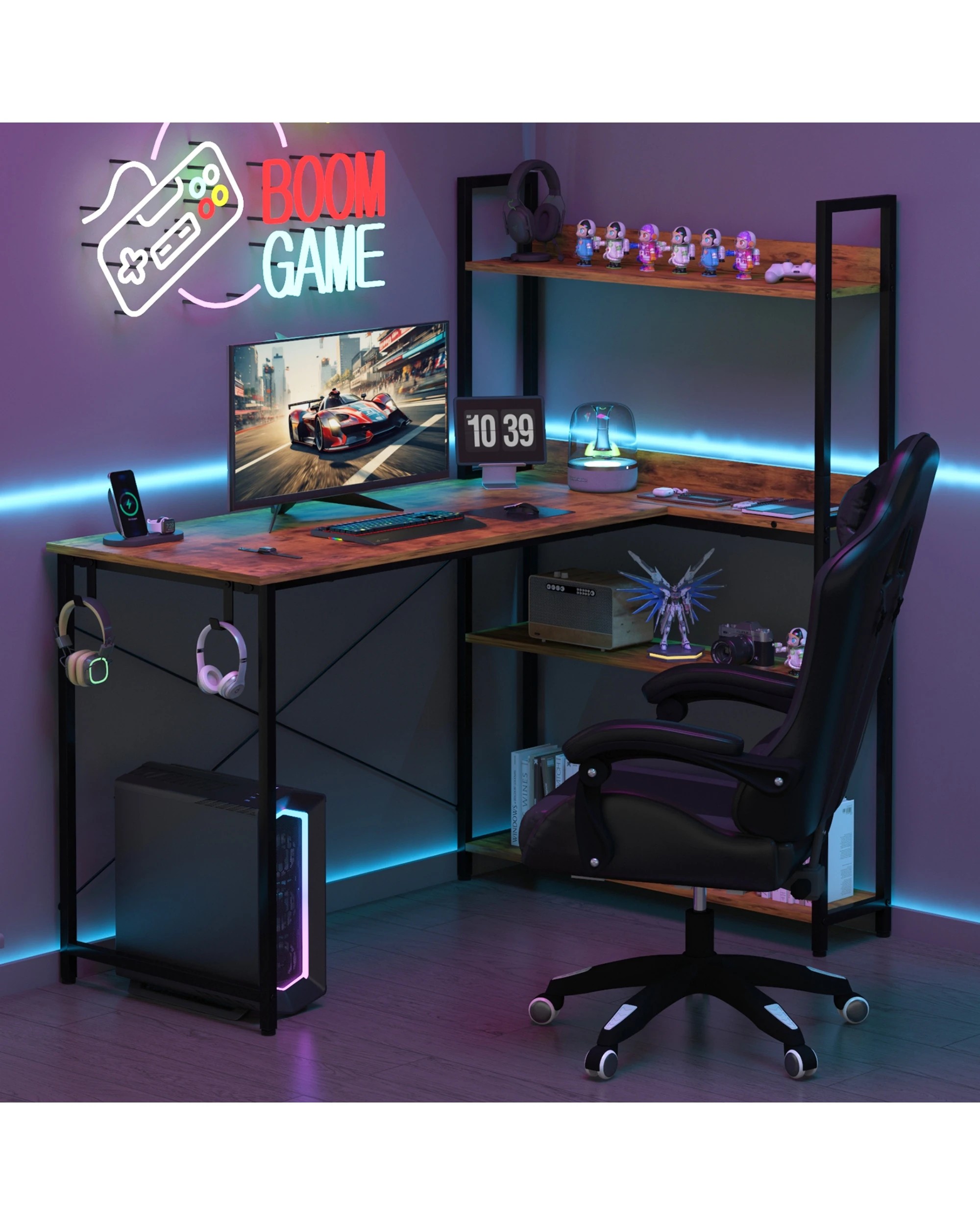 Advwin 120cm L Shaped Computer Desk With Reversible Storage Shelves Corner Desk Walnut