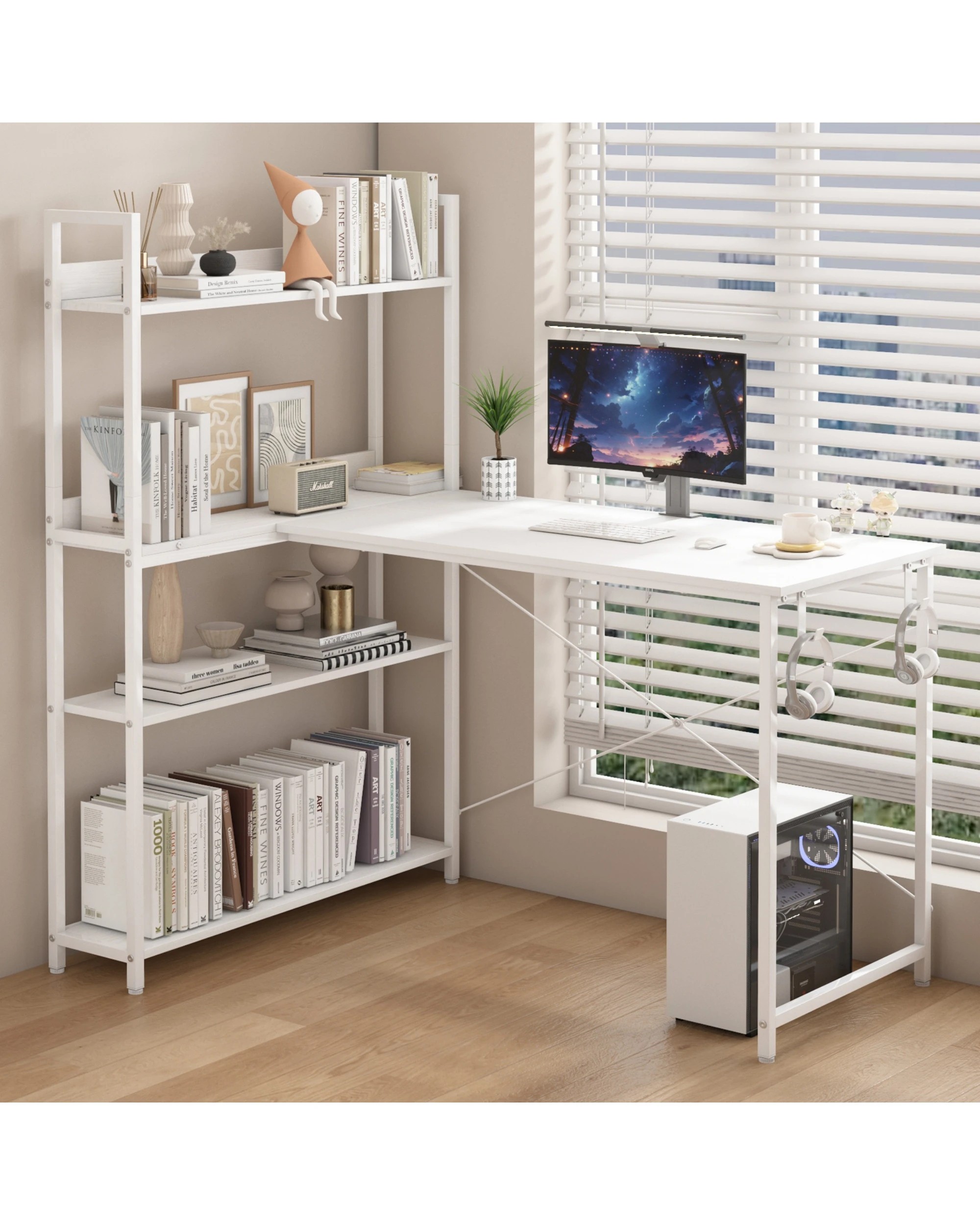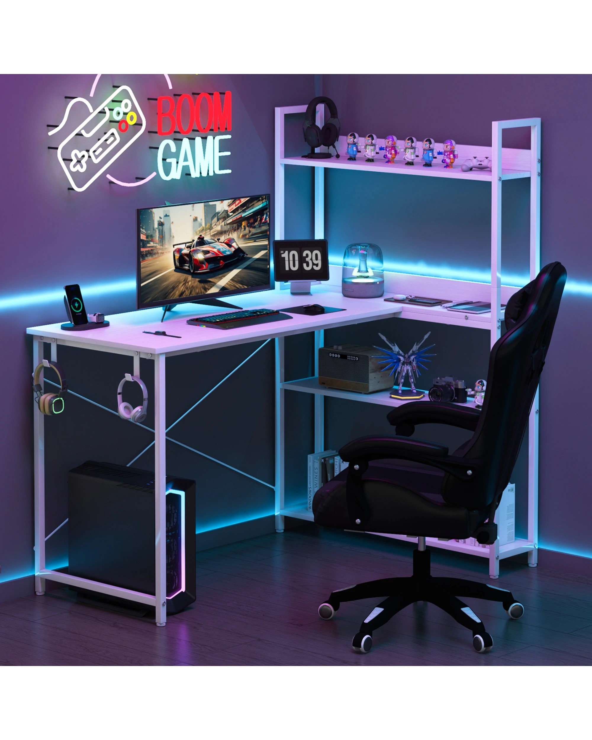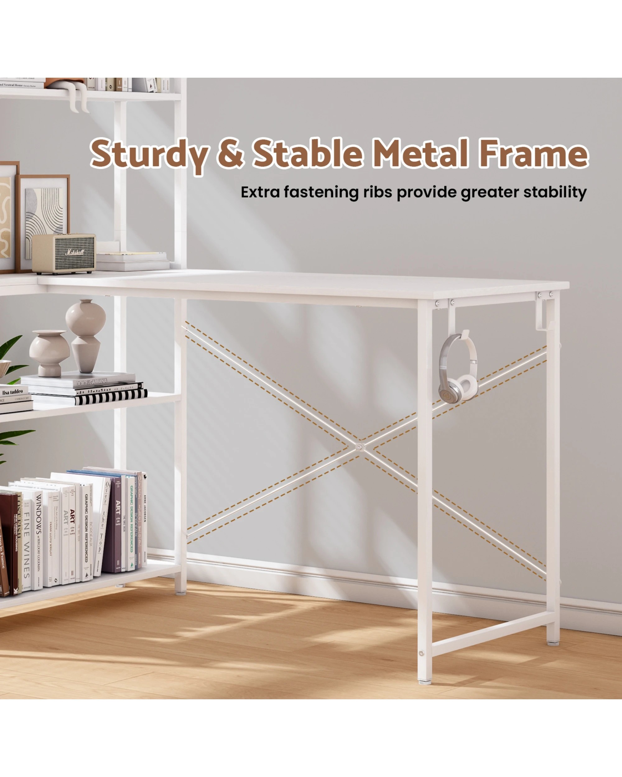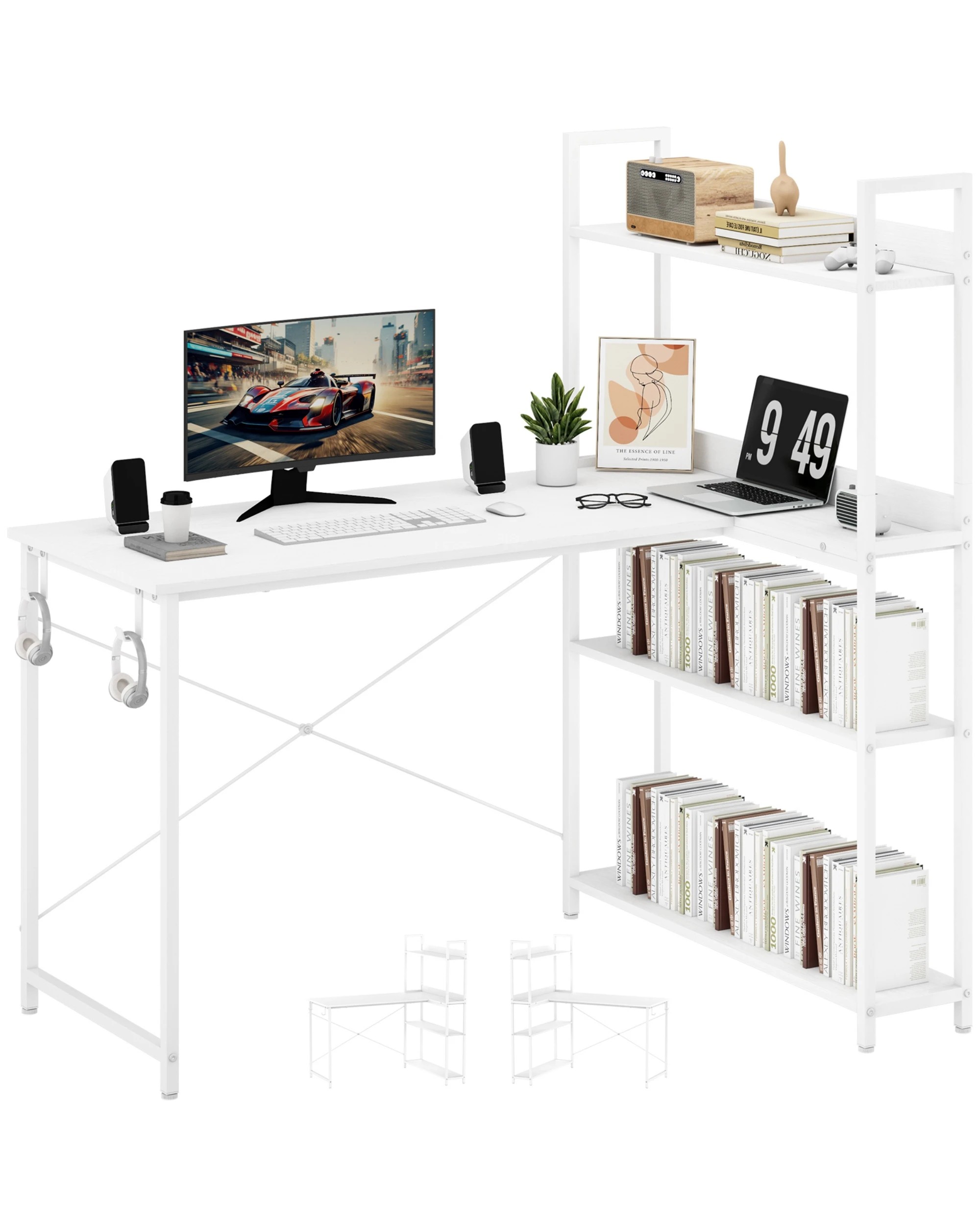 Advwin 120cm L Shaped Computer Desk With Reversible Storage Shelves Corner Desk White