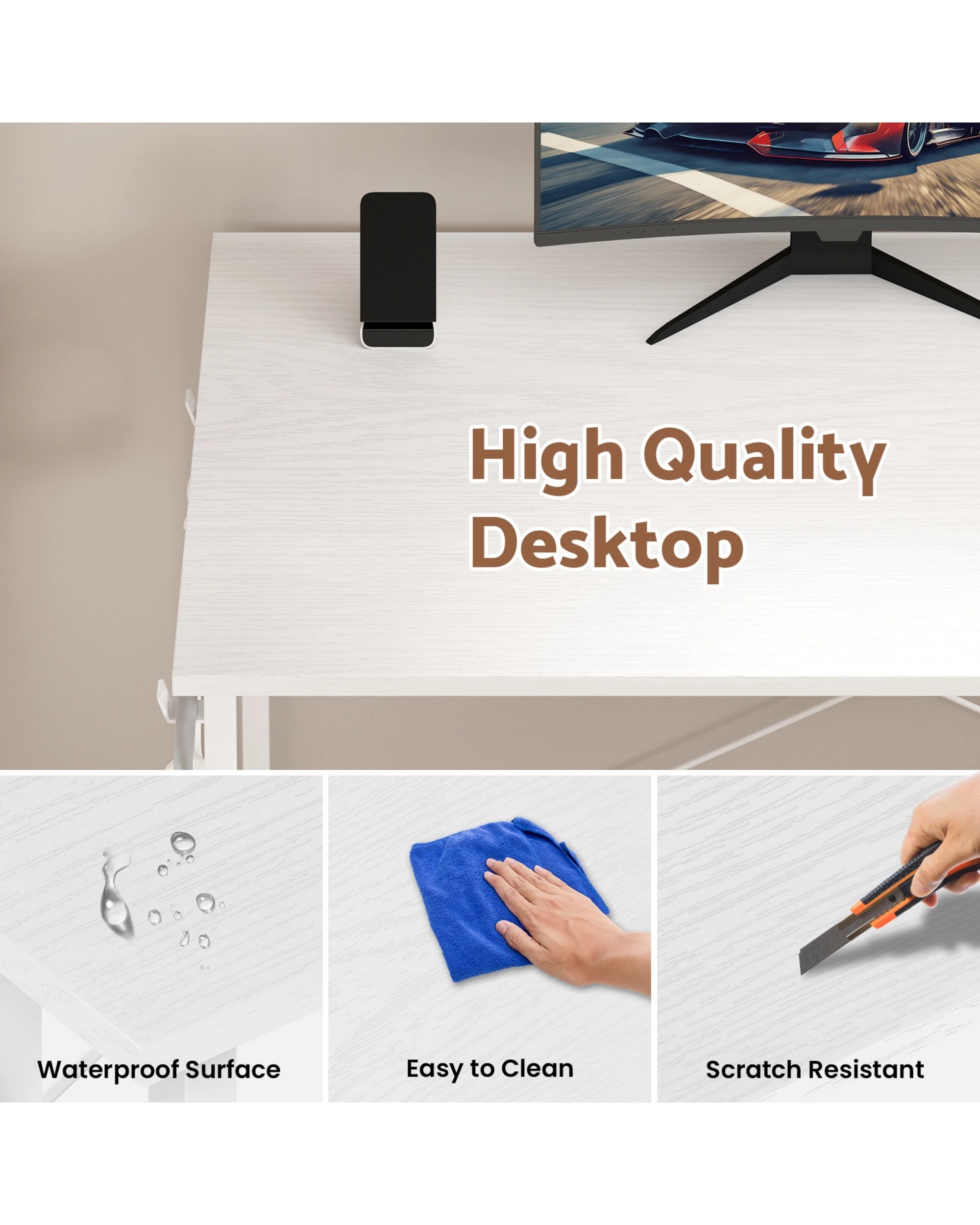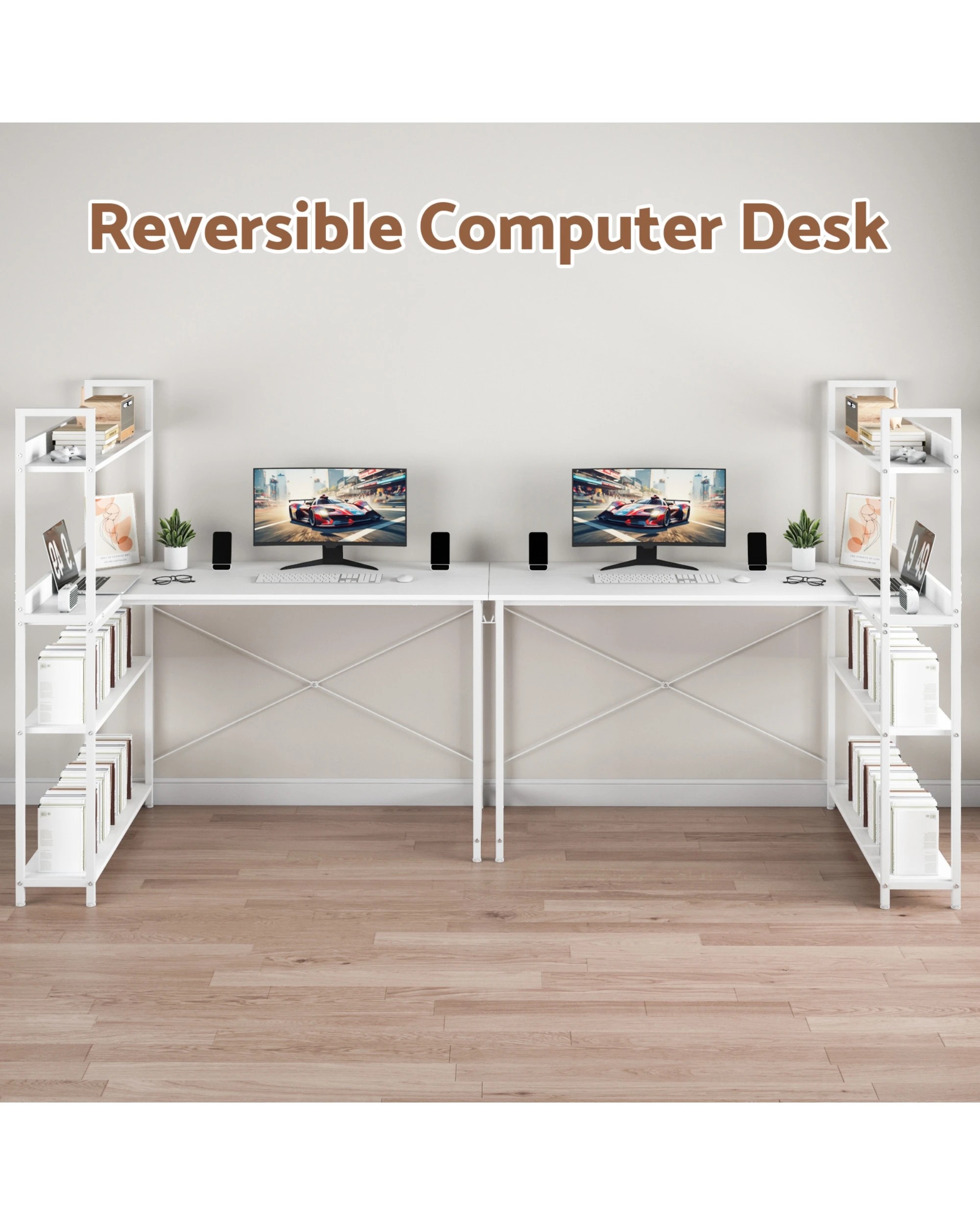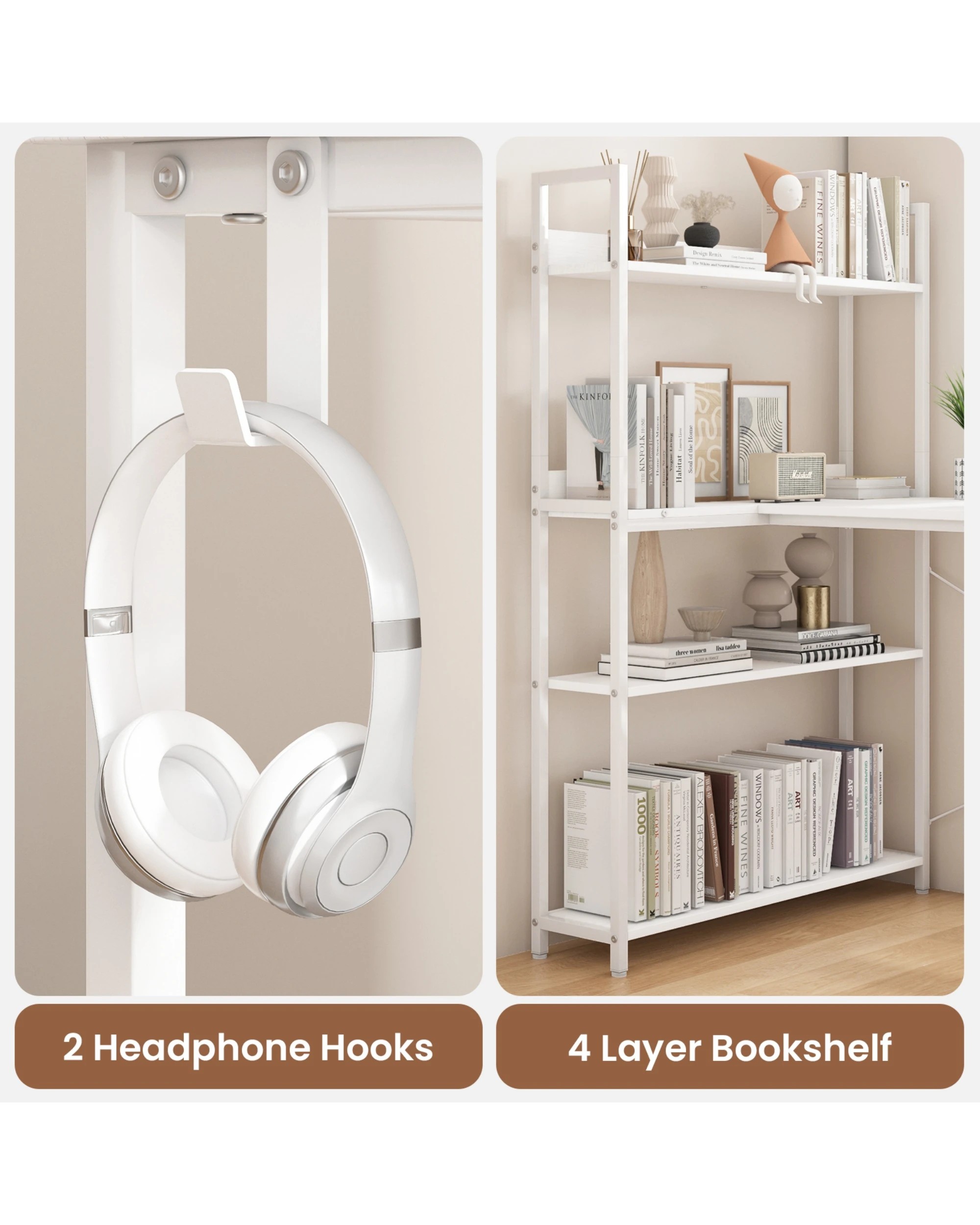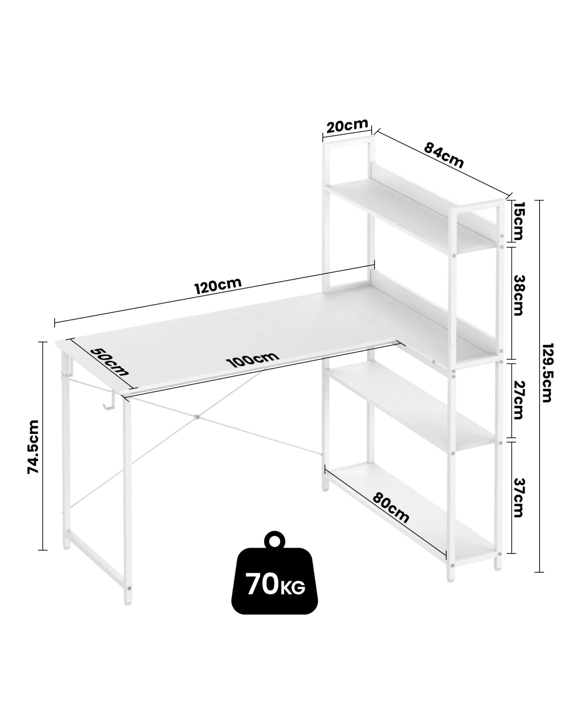 Advwin 120cm L Shaped Computer Desk With Reversible Storage Shelves Corner Desk White