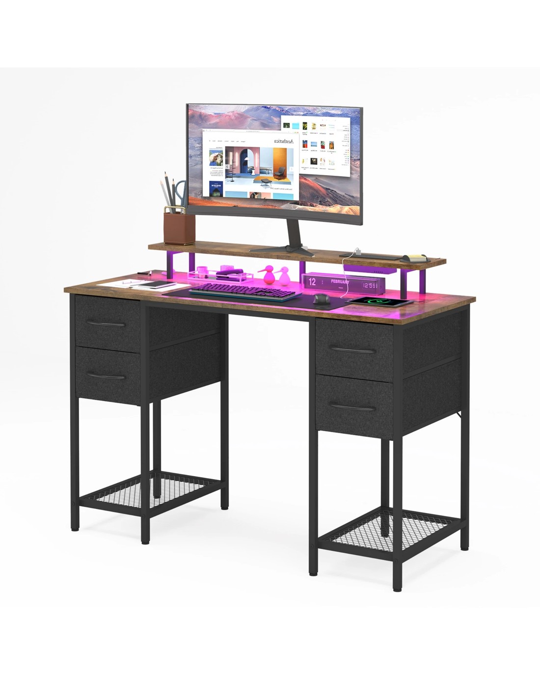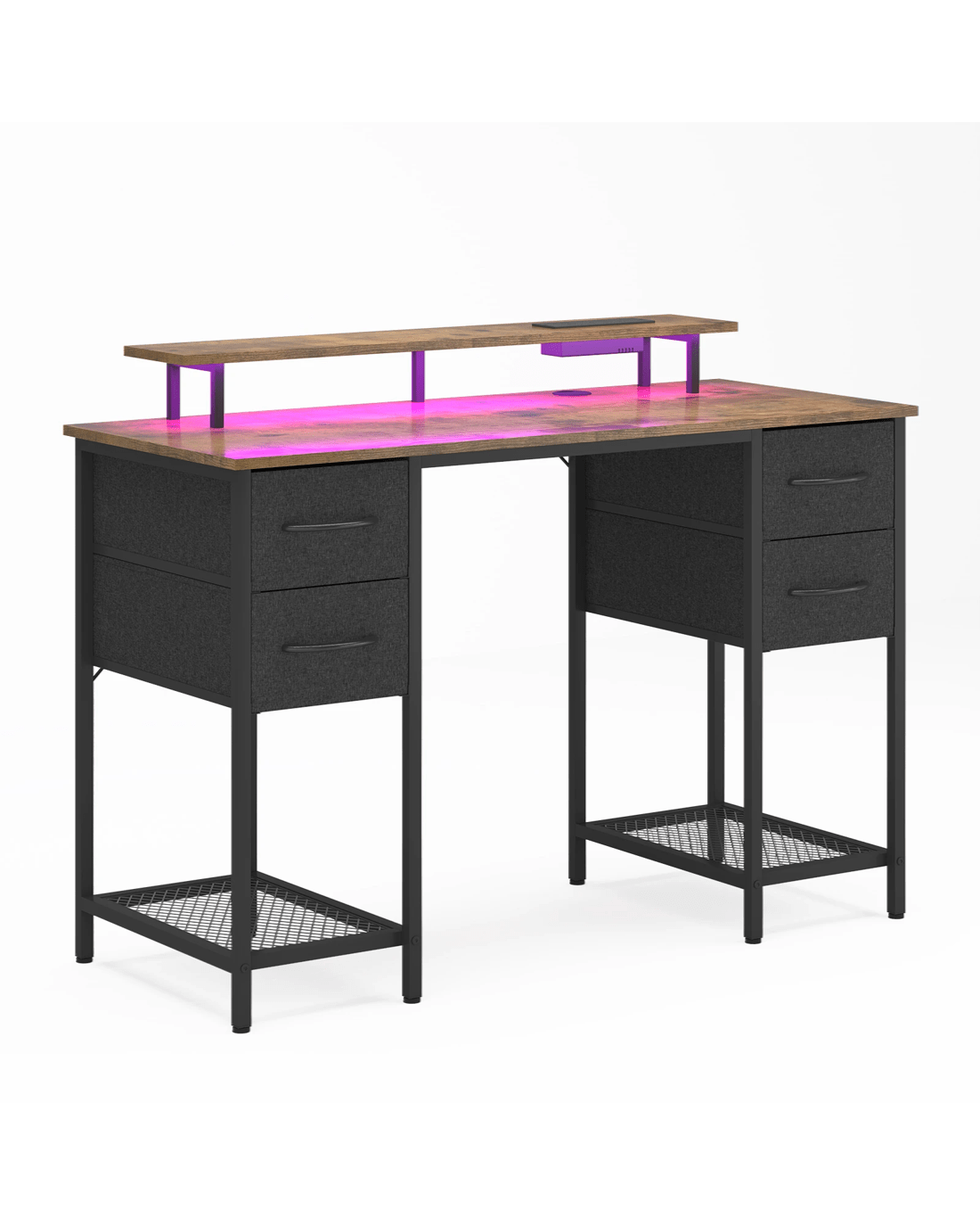 Sold by AdvwinAdvwin 120cm Walnut Computer Desk With Led Lights Power Outlets Gaming Desk