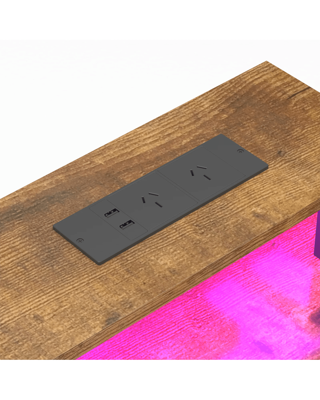Equipped with vibrant RGB LED light strips, offering 20 static colors and 21 dynamic modes, you can create the perfect gaming or working atmosphere. The built-in power strip includes 2 AC outlets and 2 USB ports, allowing you to easily charge multiple devices, from phones to tablets, without clutter.