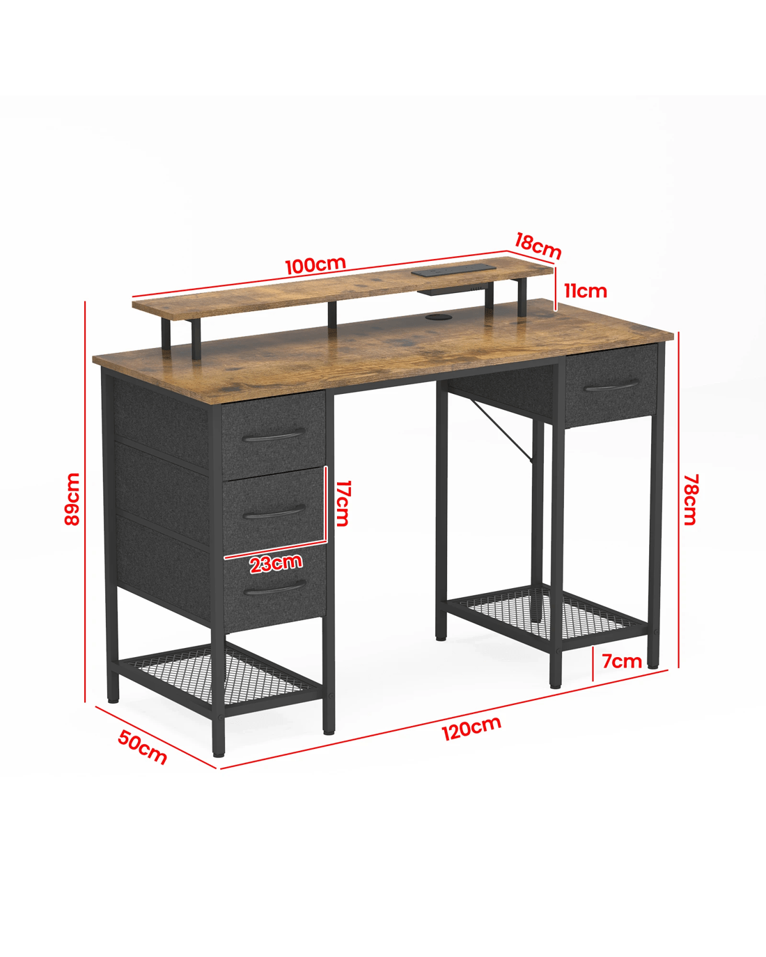 The Advwin multifunctional desk designed to enhance any workspace—your bedroom, study, or office. This spacious desk features 4 large fabric drawers, providing generous storage for documents, office essentials, or gaming equipment, keeping your area neat and organized. The drawers can be positioned on either side to match your preference.