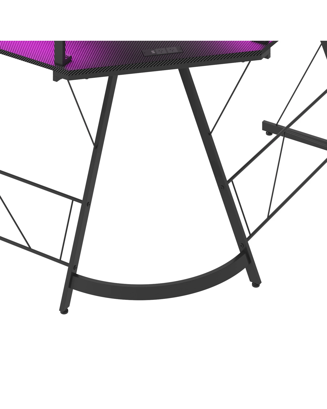 The integrated LED lights add an immersive ambiance, while the built-in power outlets and USB ports ensure your devices are always charged and ready. The added monitor stand optimizes screen placement for improved ergonomics. Elevate your workspace or gaming setup with this all-in-one corner desk designed for both style and functionality.