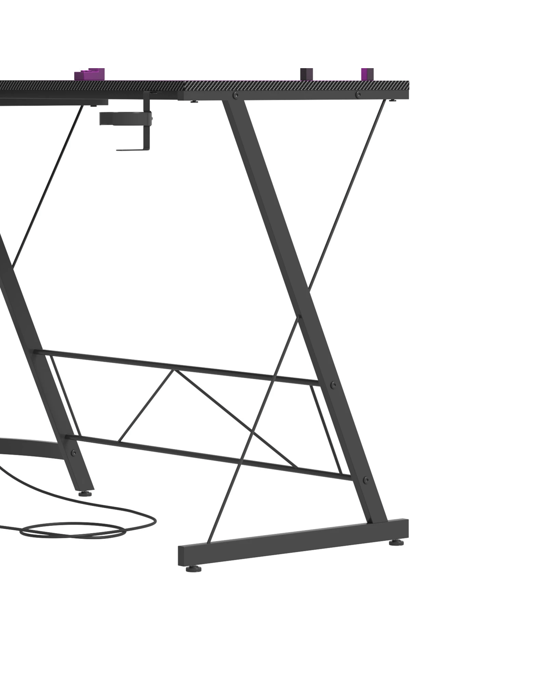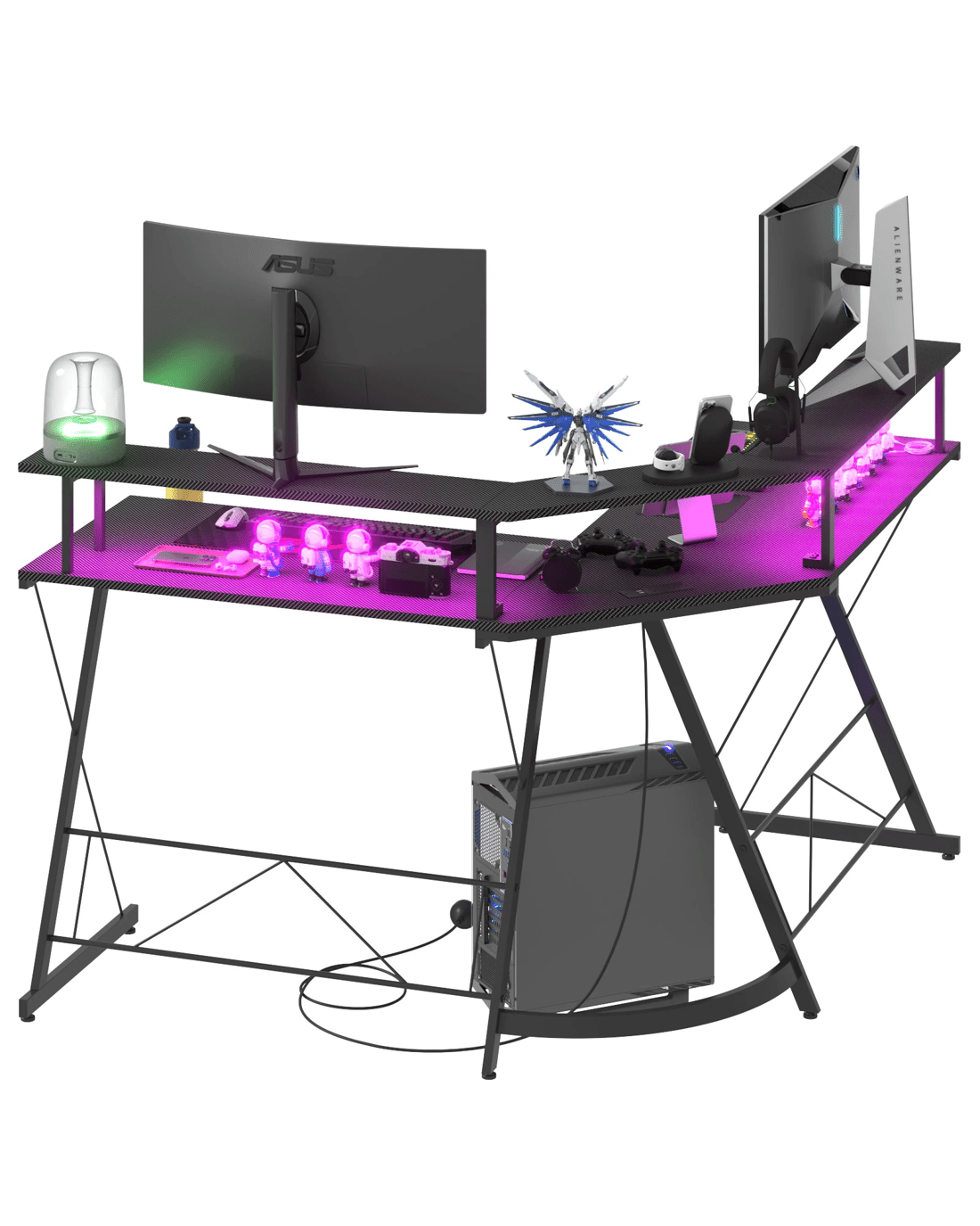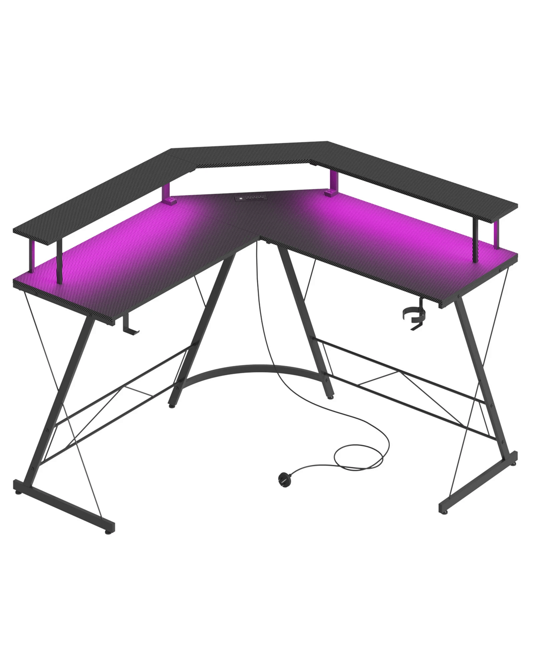 - Gaming Desk With Charging Station:Say goodbye to tangled cords and power strips cluttering your gaming area. The l shaped gaming desk includes a built-in socket with 2-Outlet & 2 USB Ports. Make it easy and convenient to power your computer, smartphone, or gaming gear.