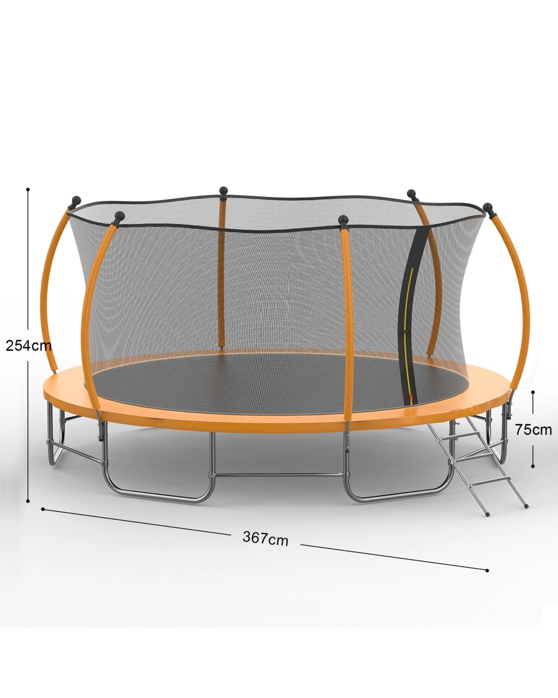 Thoughtful Details - The 12FT trampoline is equipped with a two-way buckle, which can be easily opened inside and outside, making it convenient for children to enter and exit. It is also equipped with a thickened assembly ladder, which is safe