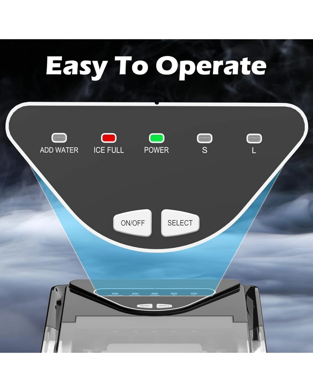 Easy to Control: The control panel is very easy to operate. Fill the ice maker with water, press the ON button, select the size of the ice cubes and that's it. When the water is insufficient or the ice basket is full, the indicator light will turn on.