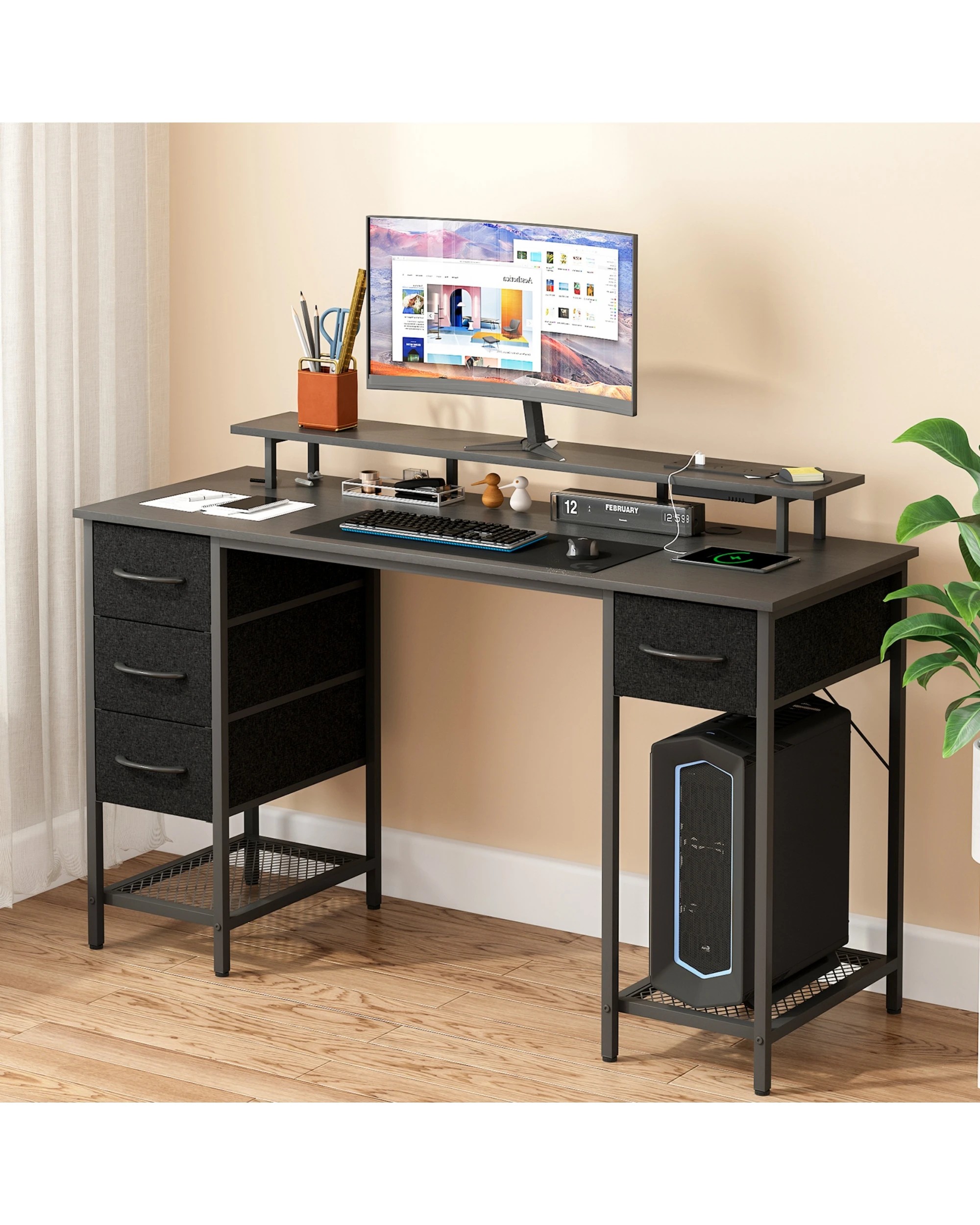 Advwin 137cm Black Computer Desk With Led Lights Power Outlets Gaming Desk