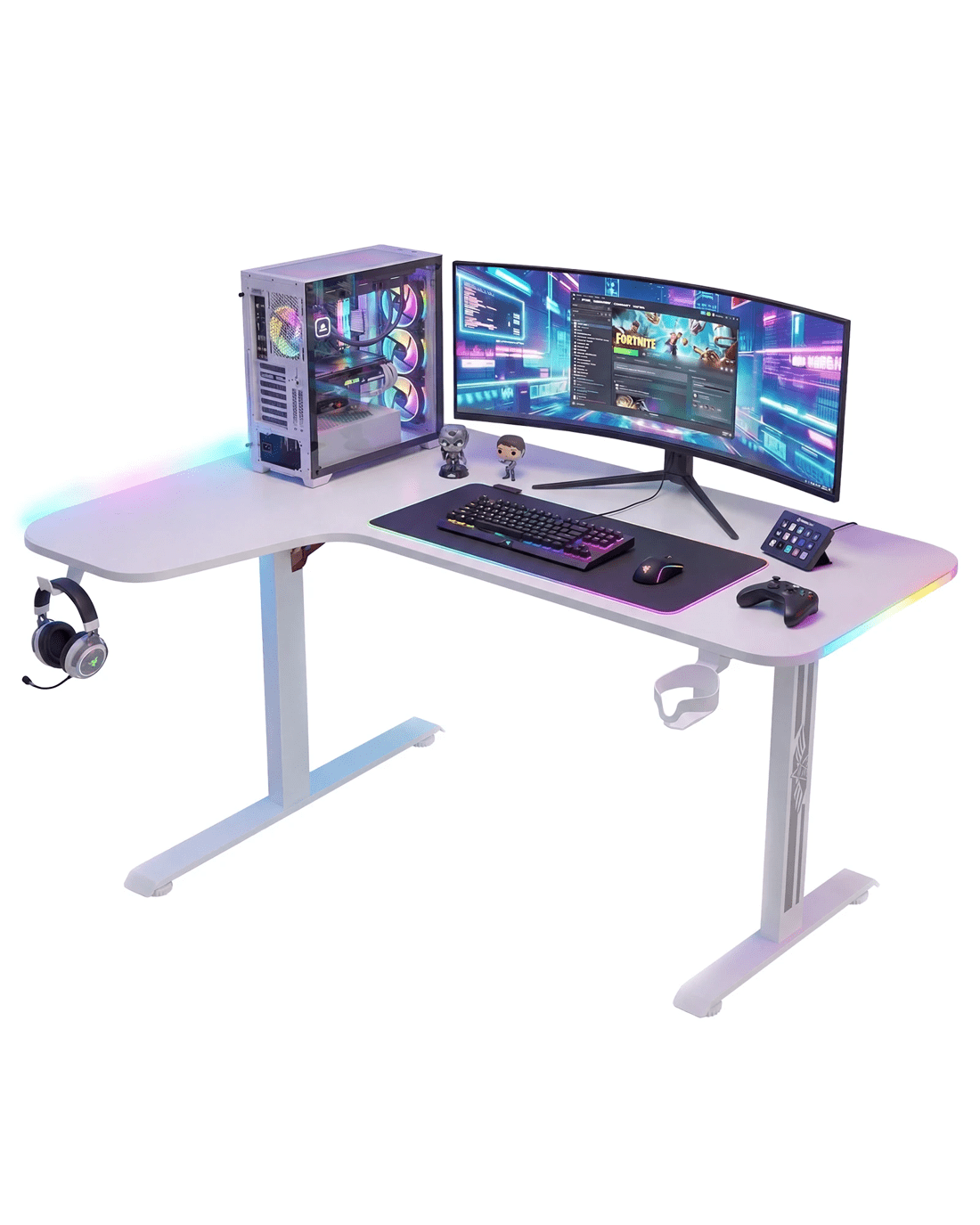 Advwin 140cm L Shaped Computer Gaming Desk With Rgb Led Light White