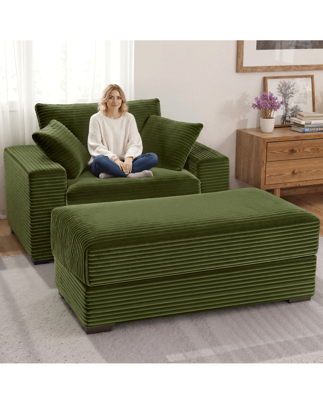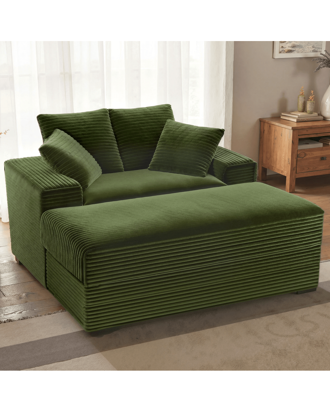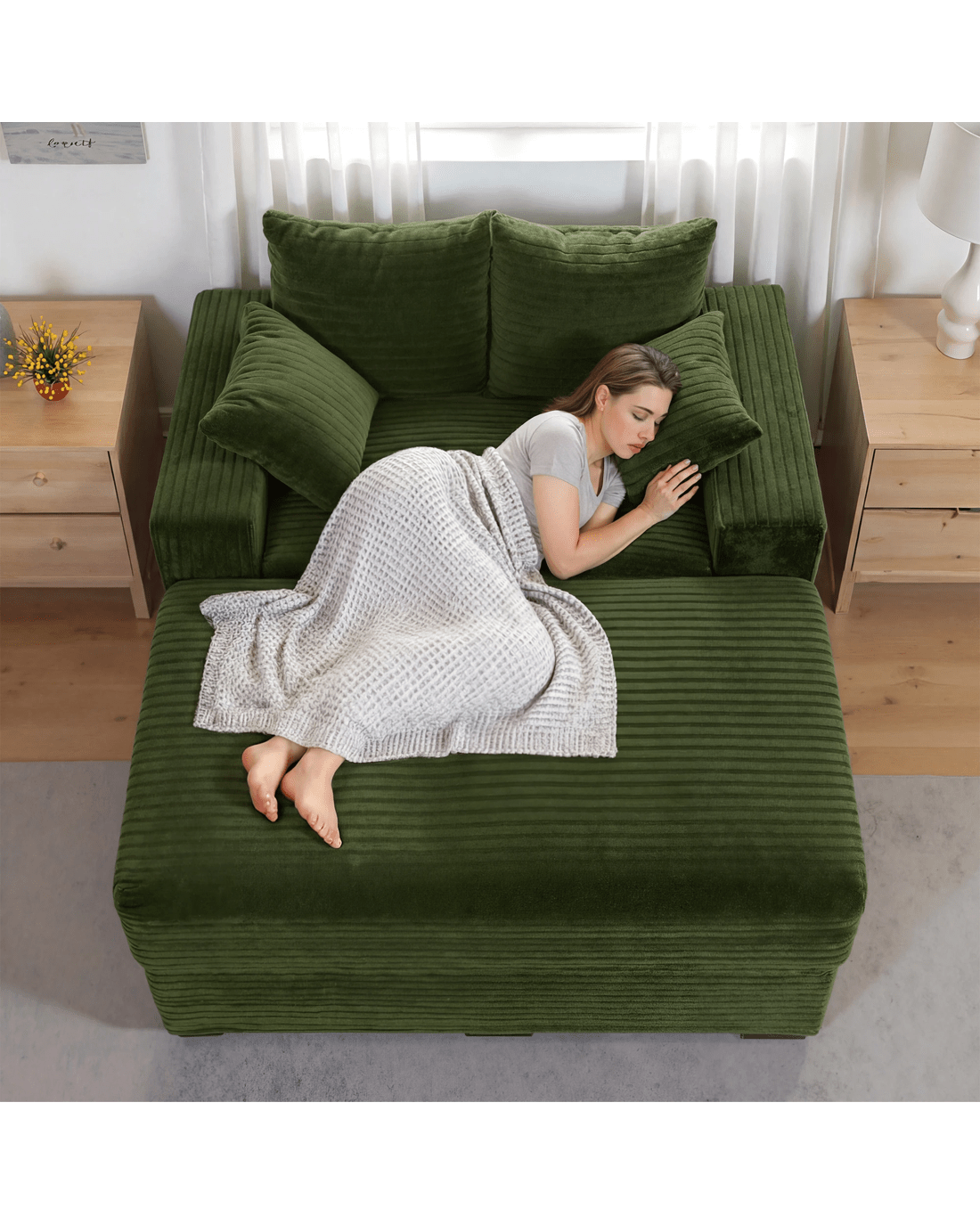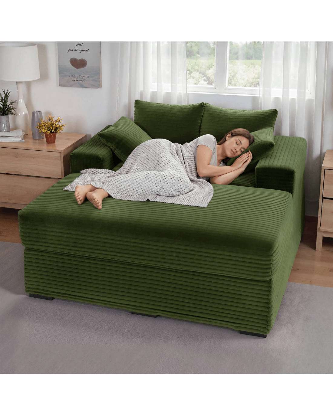 Advwin chaise lounge a perfect addition to your living room that combines comfort and style. Crafted with plush corduroy upholstery, this large chaise lounge provides a luxurious and skin-friendly feel, ensuring a delightful lounging experience.