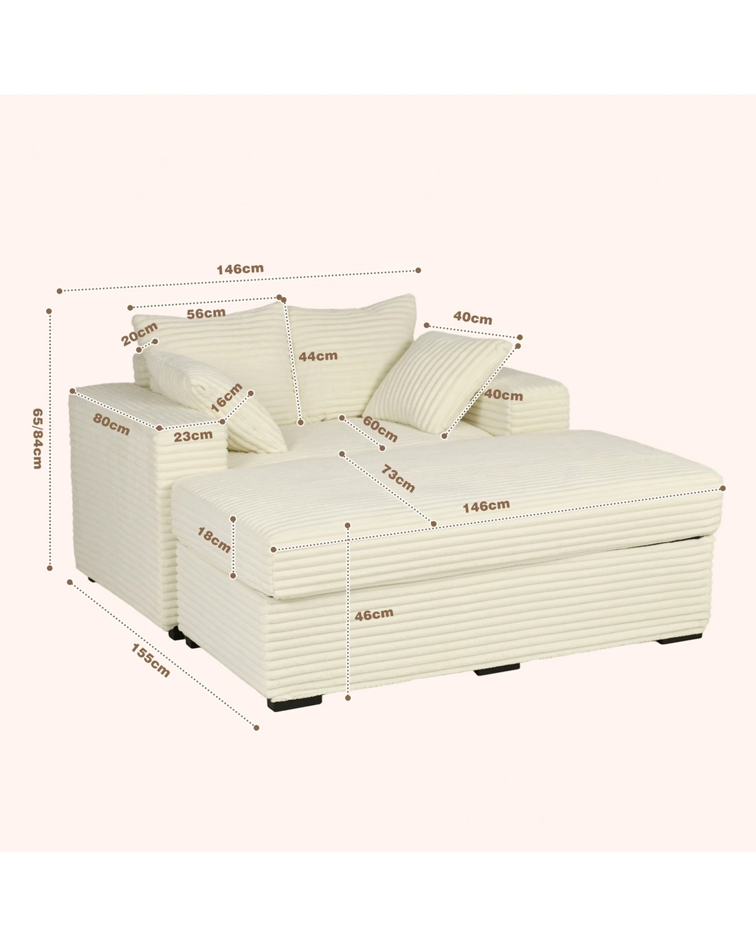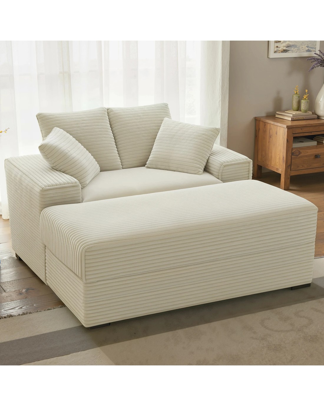 Sold by AdvwinAdvwin 148cm Chaise Lounge Chair w/ Storage Ottoman Corduroy Cloud Couch Oversized Sleeper Upholstered Sofa Bed