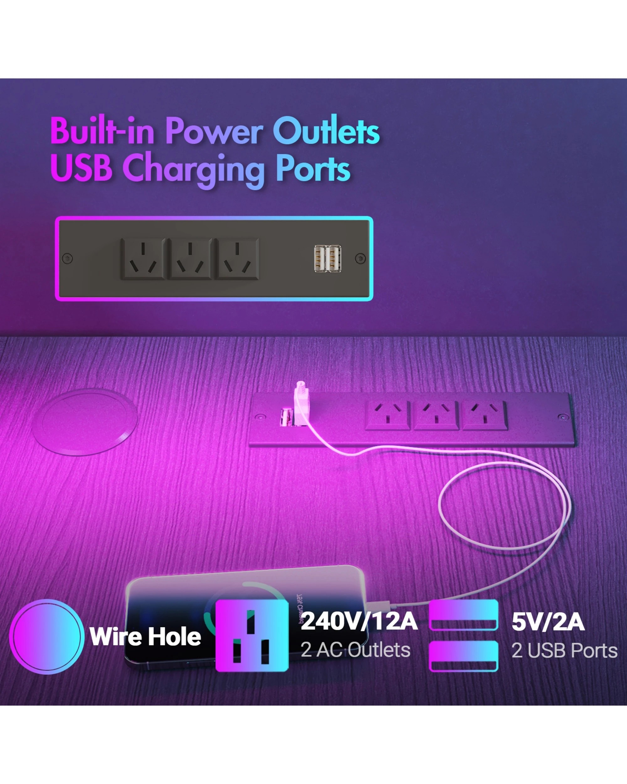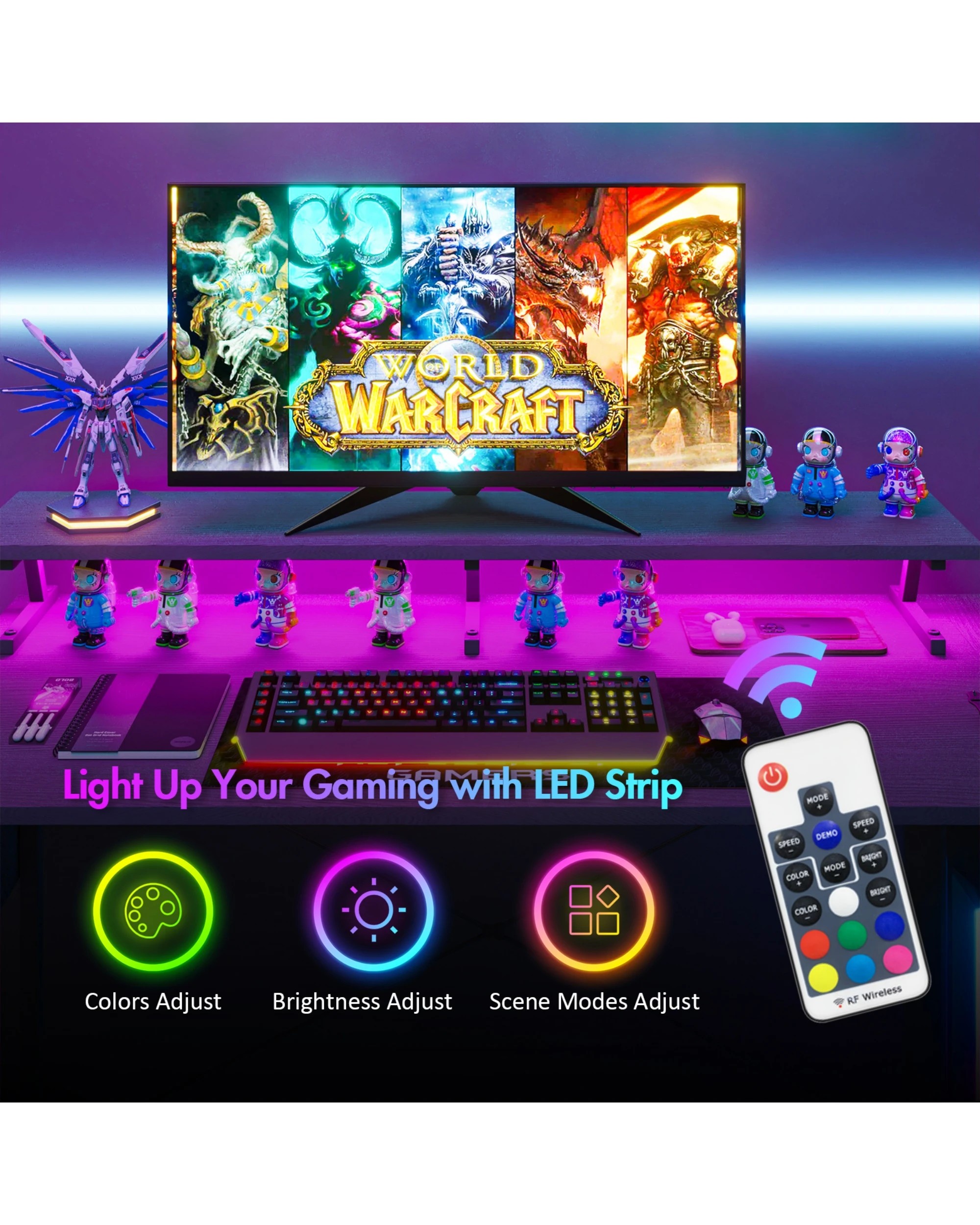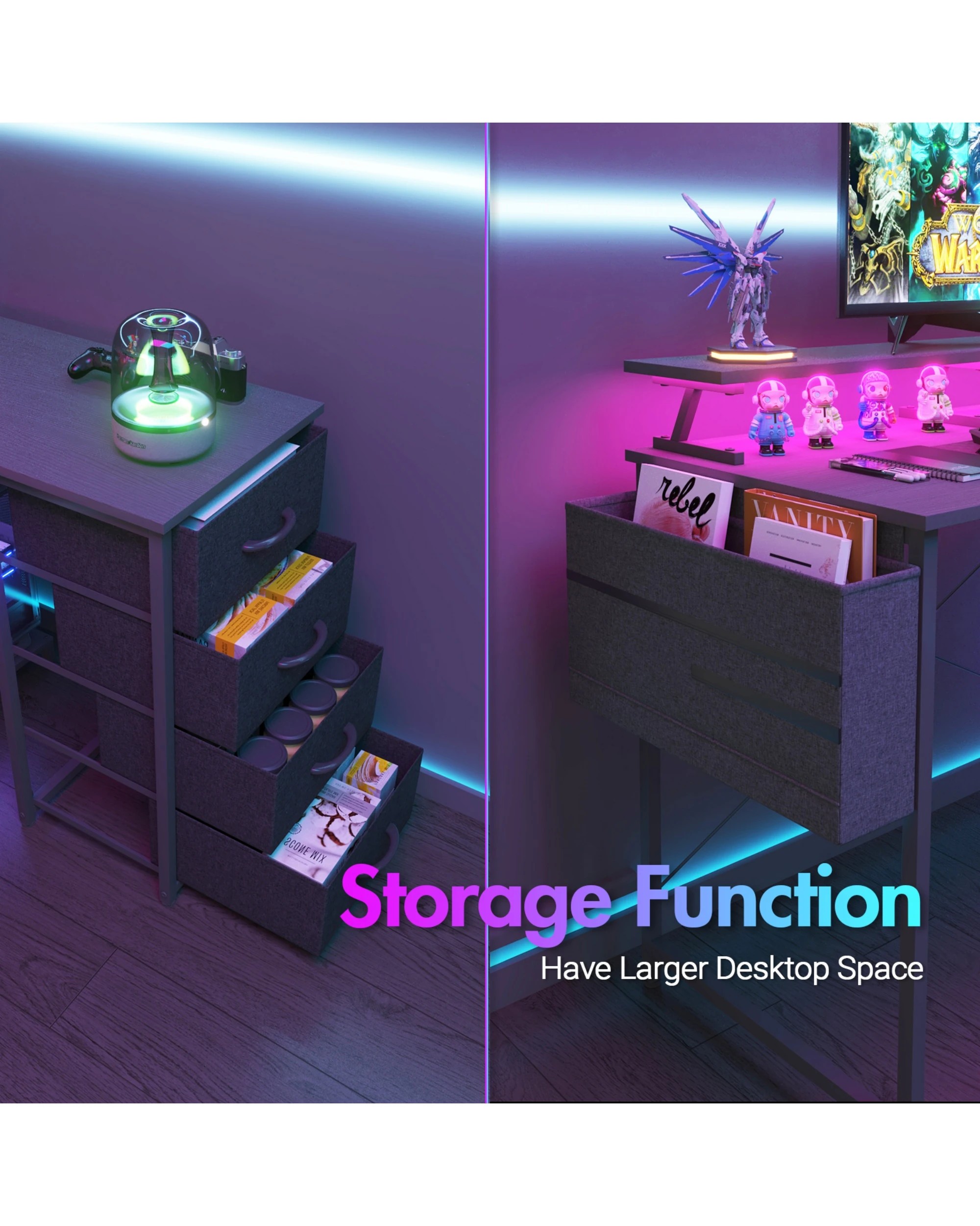 Advwin 160cm Black L Shaped Gaming Desk With Led Lights & Power Outlets Convertible Computer Desk With Monitor Stand