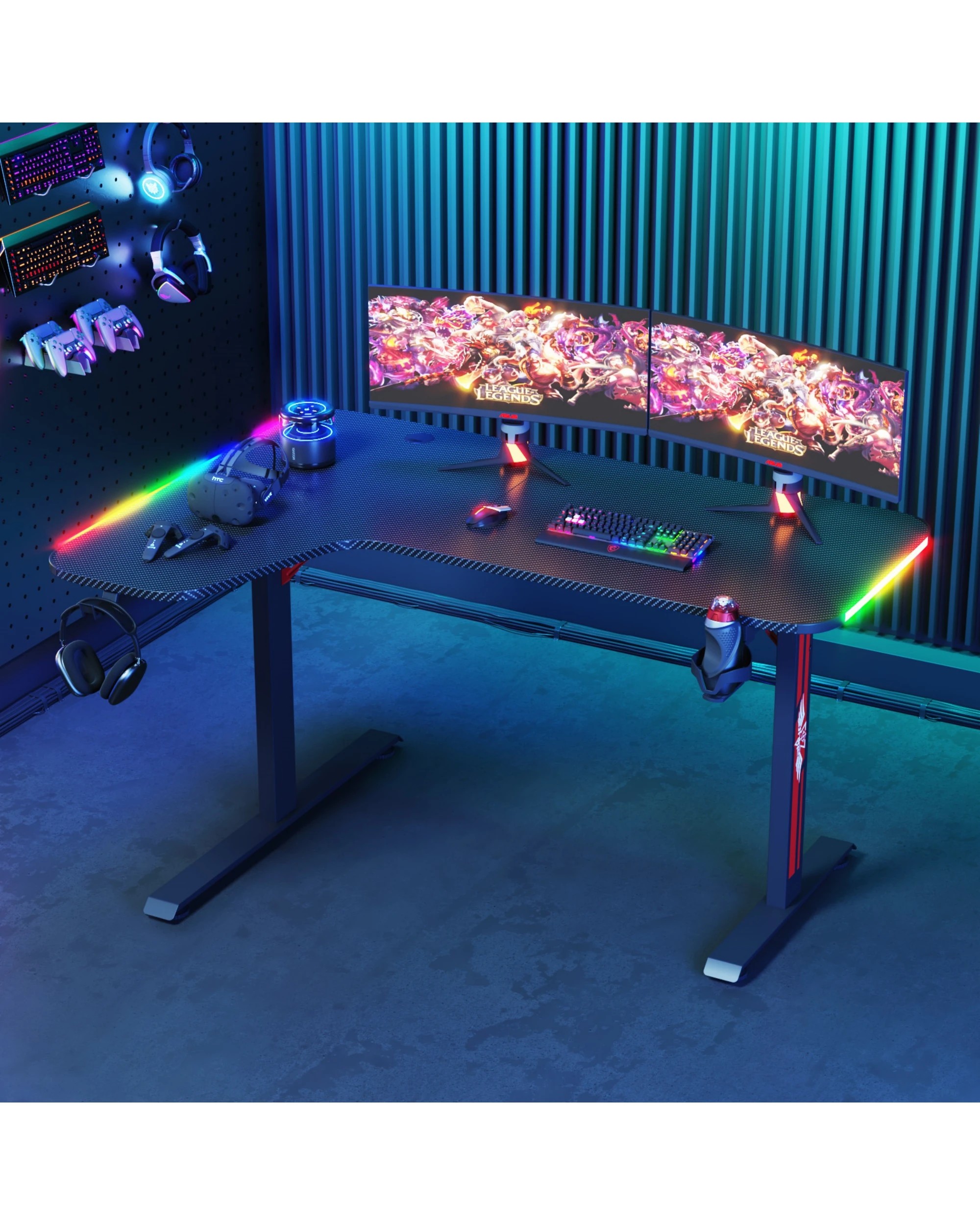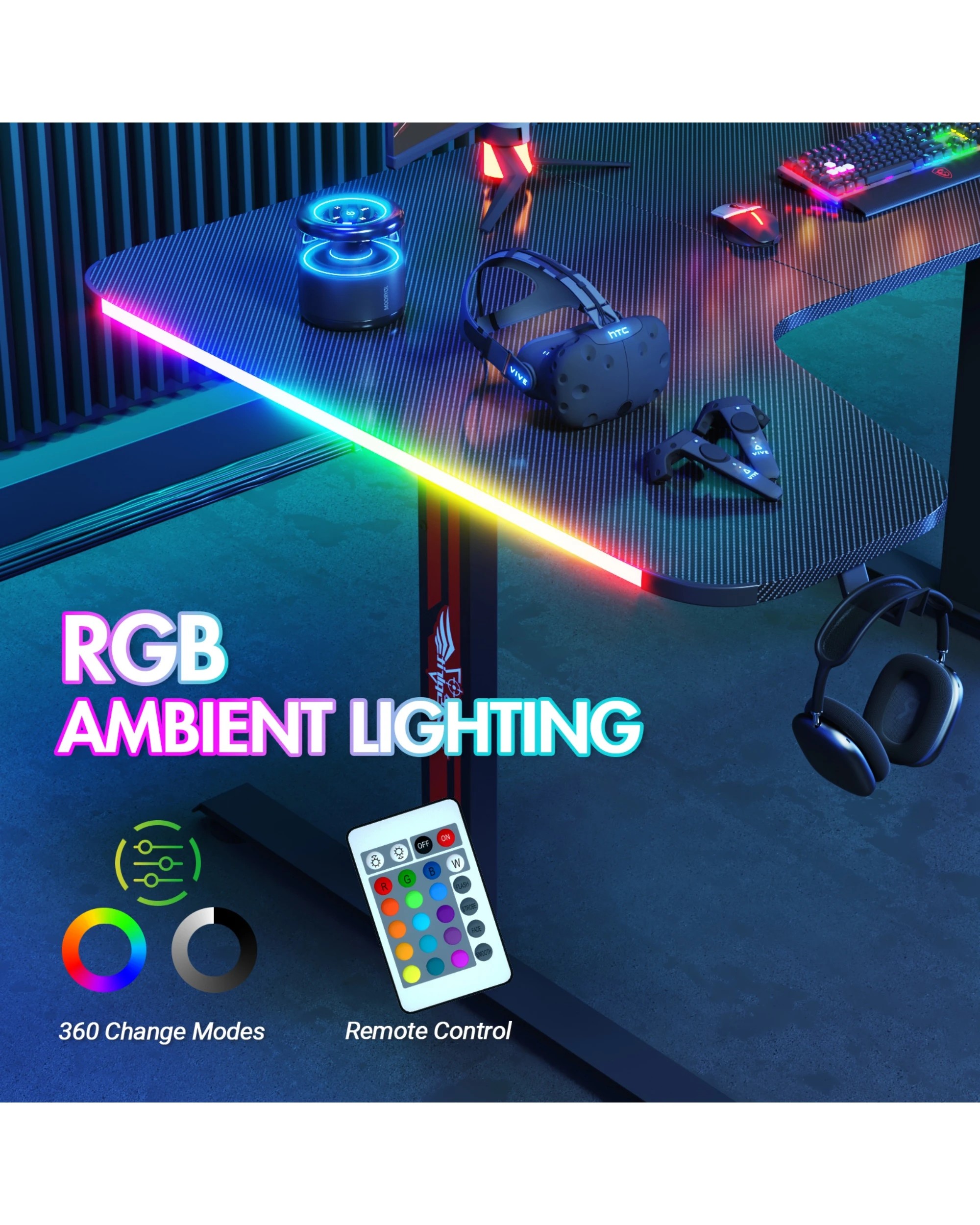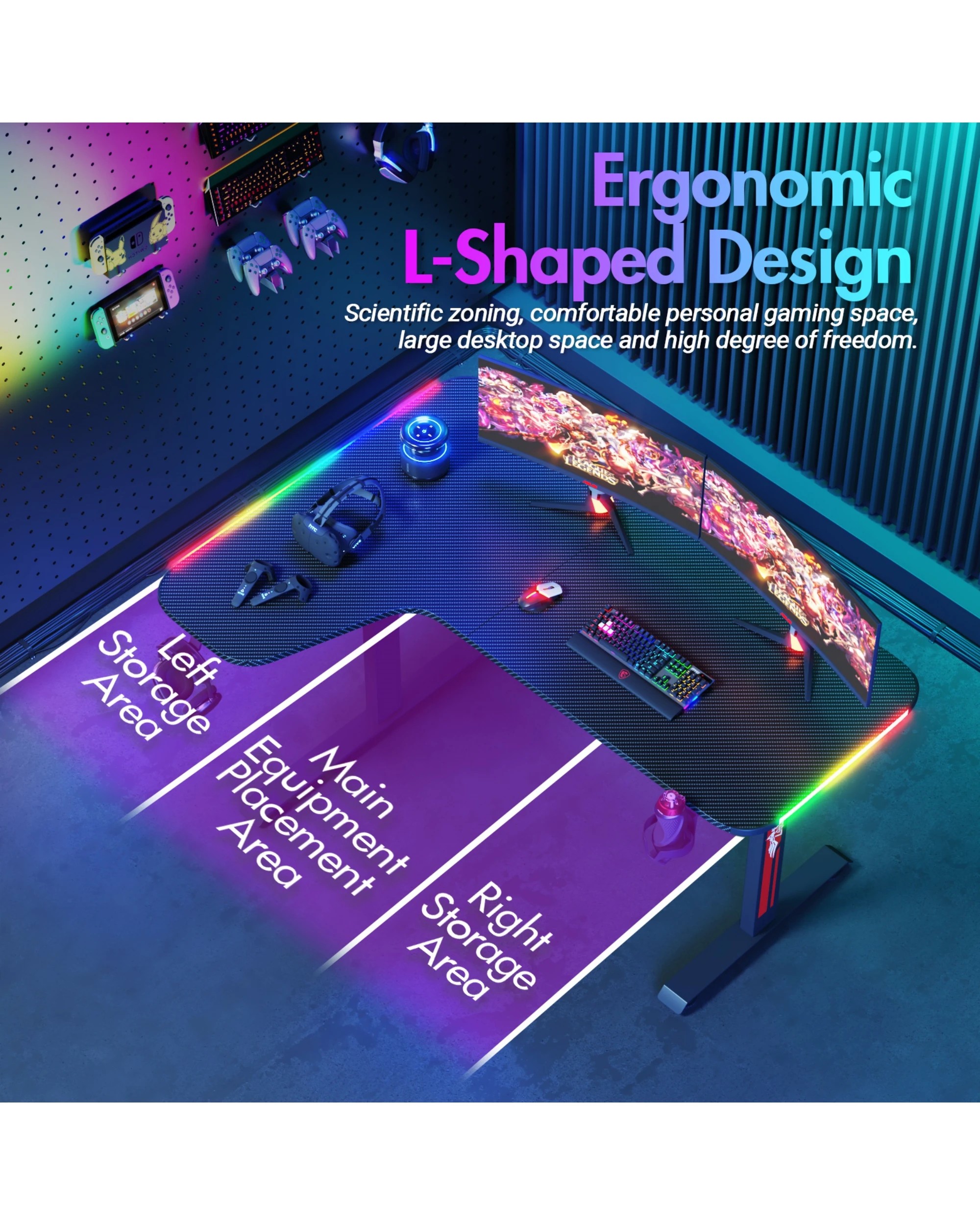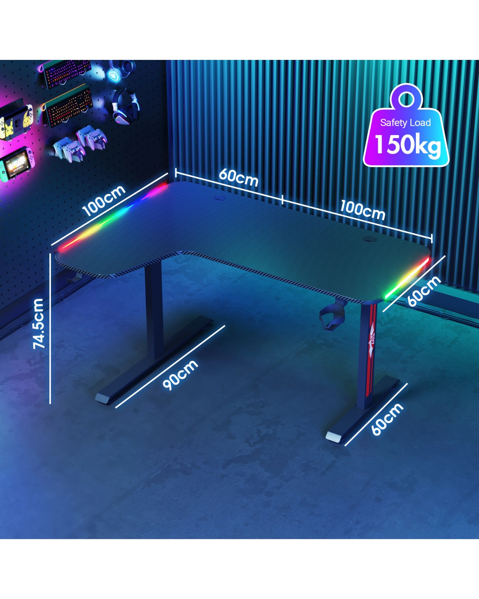 Advwin 160cm L Shaped Gaming Desk Rgb Led Light Computer Desk Black