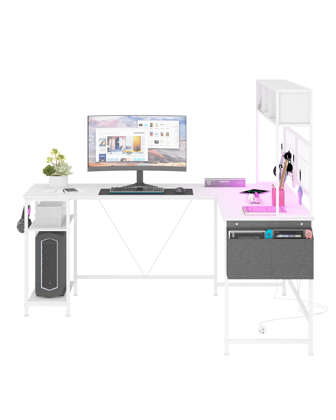 Sold by AdvwinAdvwin 170cm L Shaped Gaming Desk With Led Lights & Power Outlets Reversible Storage Shelf Computer Corner Desk White