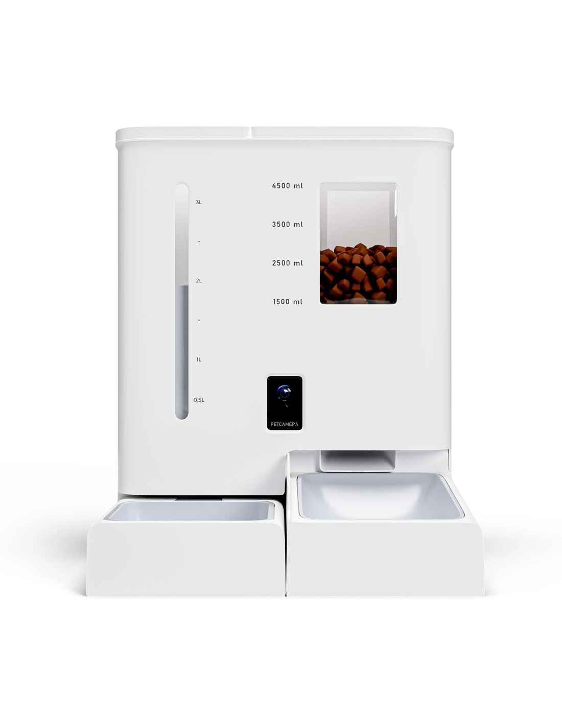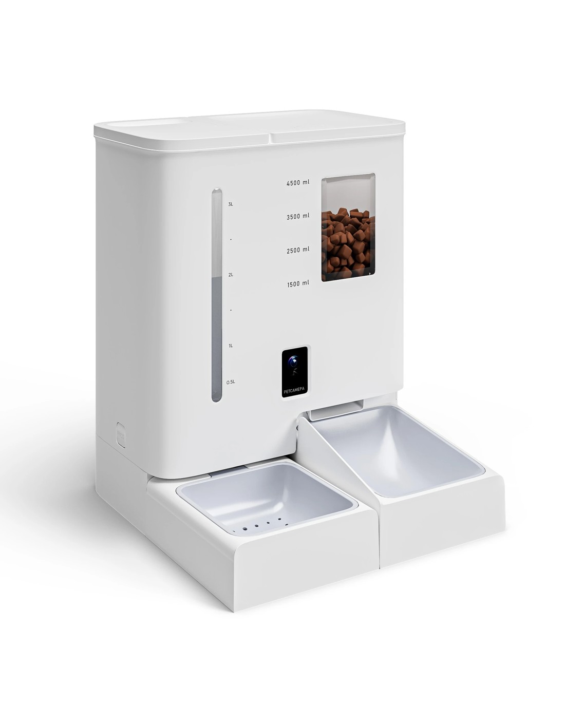 Effortless Nourishment: A high-capacity 5L food dispenser and 4L water tank provide multiple days of sustenance.