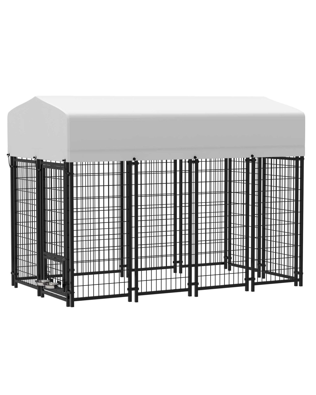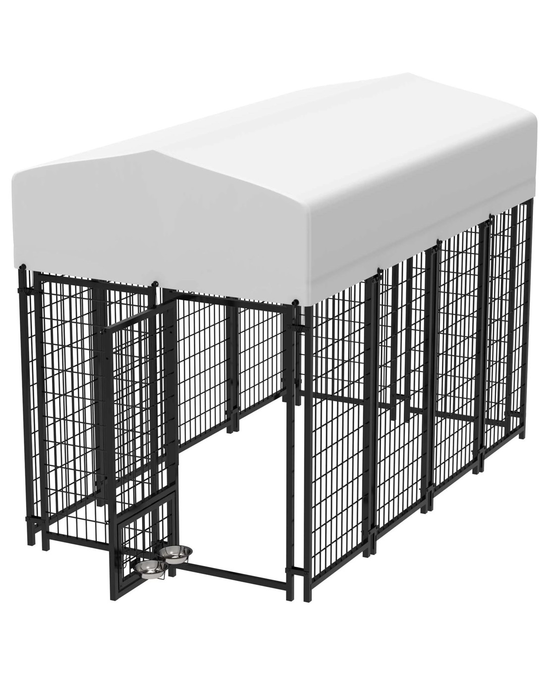 Give your large breed dog a secure and comfortable outdoor space with our Heavy-Duty Metal Dog Kennel. Designed specifically for strong, active dogs like Labradors and German Shepherds, this robust enclosure combines maximum security with owner convenience. Built from high-tensile strength iron and finished with a rust-resistant epoxy coating, it stands up to harsh weather and energetic pets. The included waterproof, UV-protected roof provides essential shelter from sun, rain, and snow, while the pet-proof door and swivel feeding gate ensure safety and ease of use. With a spacious interior for play and a modular design that allows for quick one-person setup, this kennel offers a sturdier, more reliable alternative to traditional chain-link pens. It’s the perfect solution for safe outdoor training, playtime, or temporary containment while you’re busy in the yard.