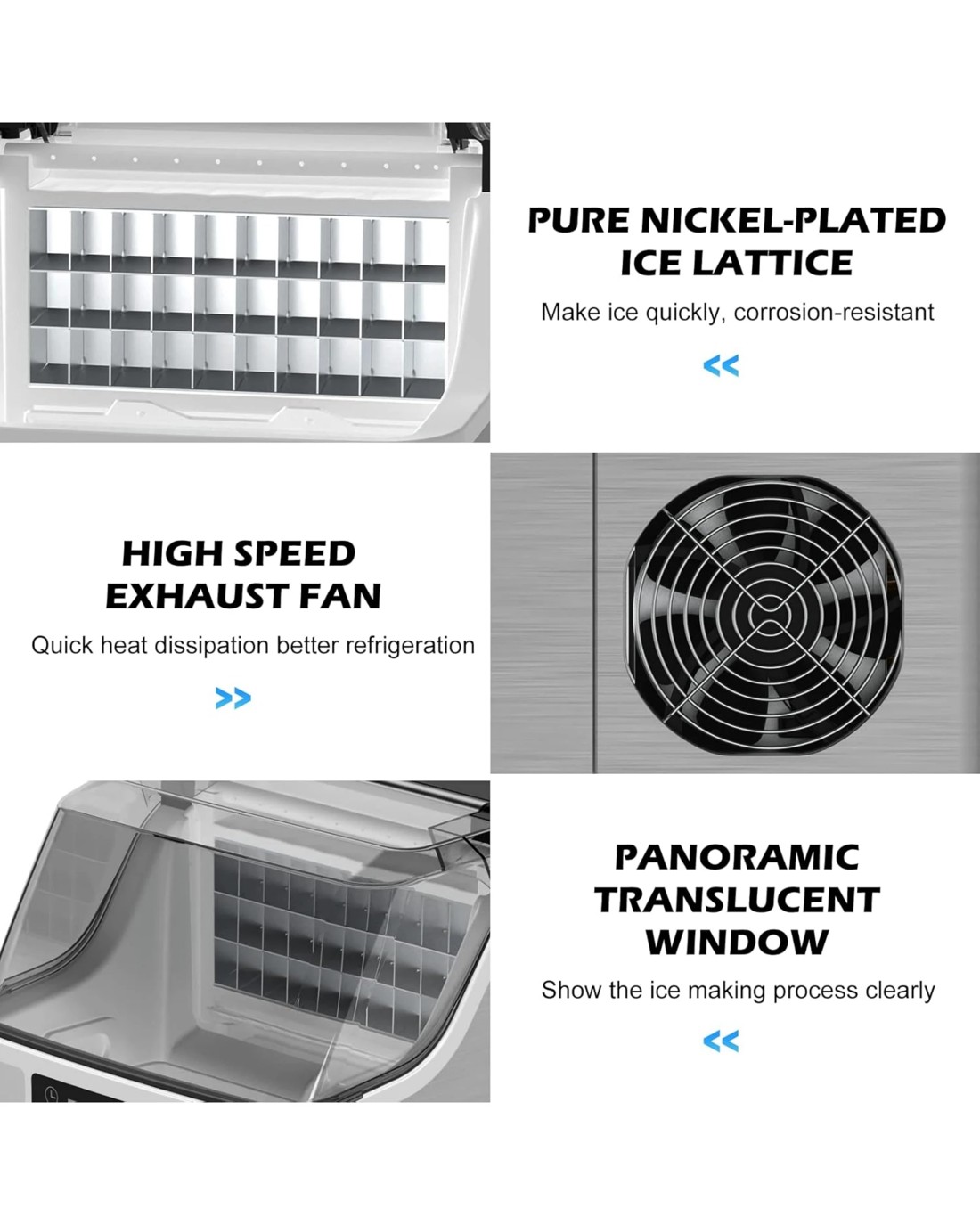 CHILLING & PURE - Nobody can stand a scorching summer without ice. Keeping food fresh, creating cold drinks, chilling beers, and champagne, it all comes true with an ice maker. đŸ‘‰Besides, square ice cubes are featured with slow-melting, fine in shape, and pure in clarity and density.