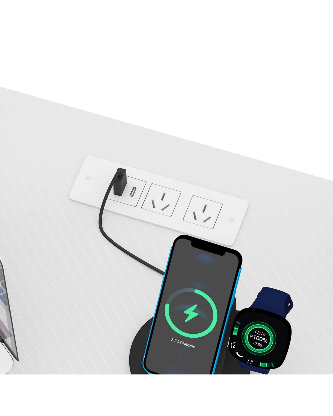 • 2 power outlets, 1 USB port, 1 one Type-C port