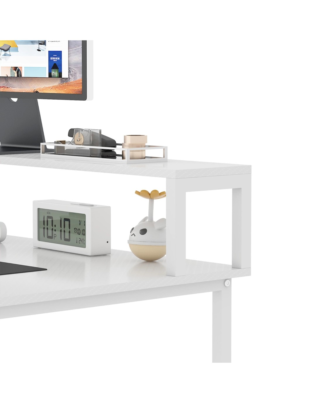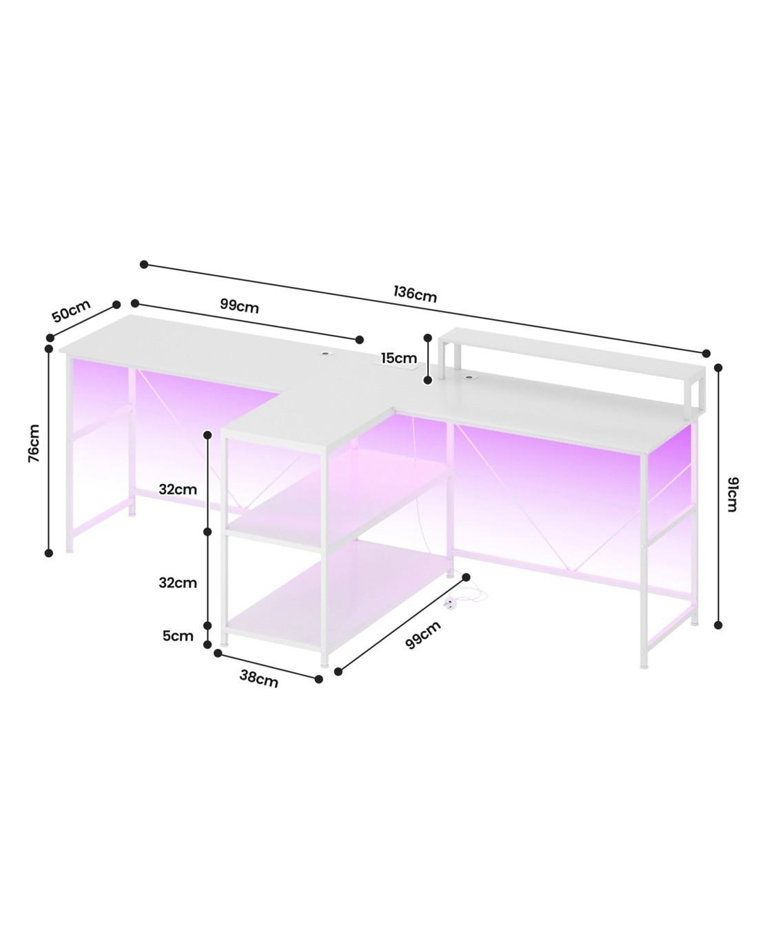 Integrated LED lighting creates an immersive atmosphere, while built-in power outlets, USB ports, and Type-C ports ensure your devices are always fully charged and ready to use. This stylish and practical double computer desk will elevate your workspace or gaming experience.