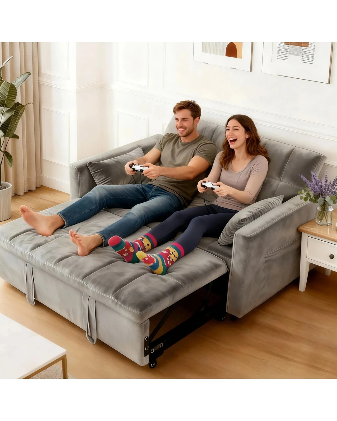 【3-in-1 Multifunctional Convertible Sofa 】Expertly engineered to transform your living space with three innovative configurations. This versatile piece effortlessly adapts to your every need through its pull-handle mechanism and smooth-rolling hidden wheels. With a simple pull, it transforms from a space-saving loveseat to a comfortable lounge chair and then to a full-size sleeper bed. Perfect for maximizing small apartments, studio spaces, and multi-purpose rooms.