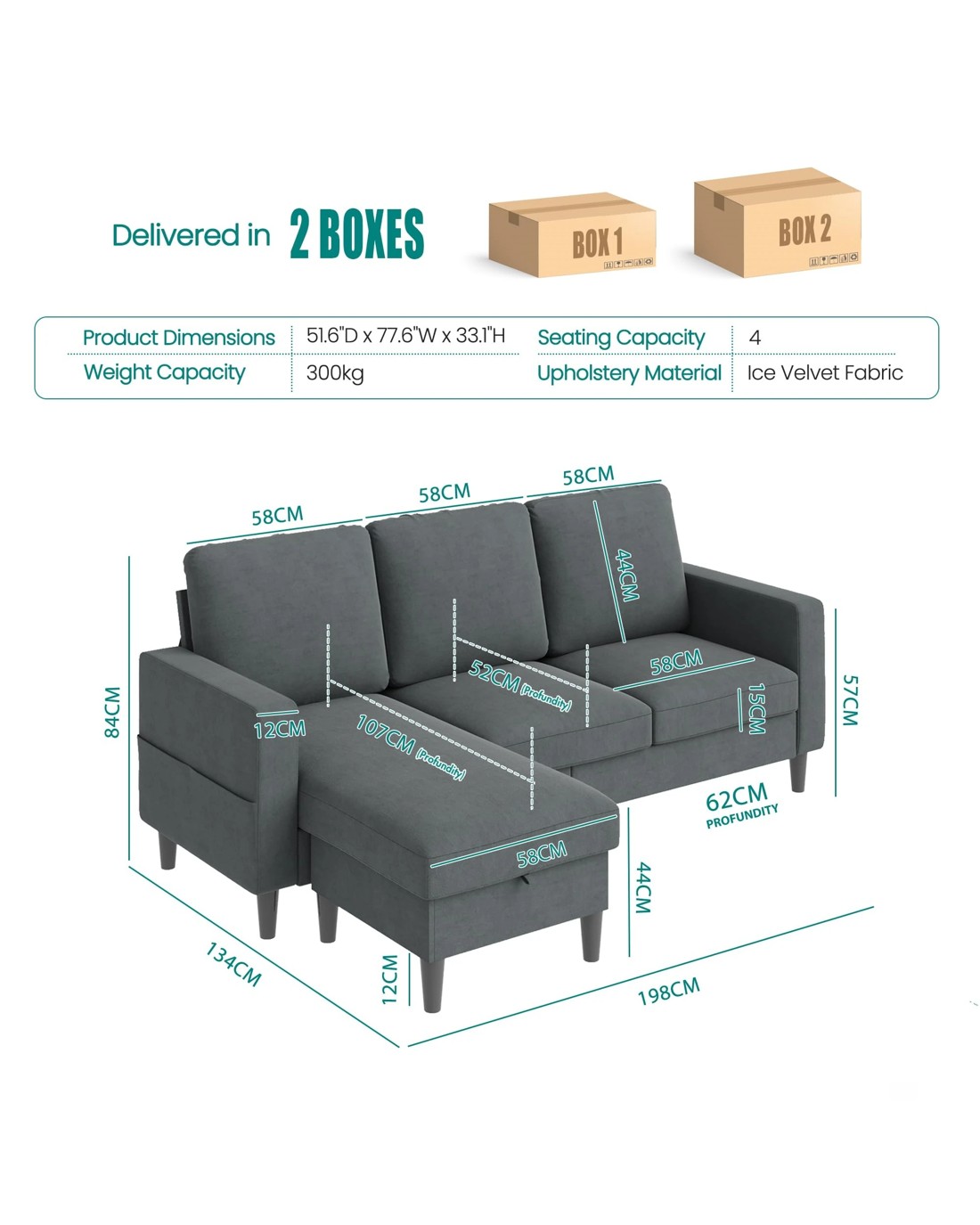 Sold by AdvwinAdvwin 3 Seater Sofa Modular Corner Lounge Chaise Set With Storage Ottoman Grey