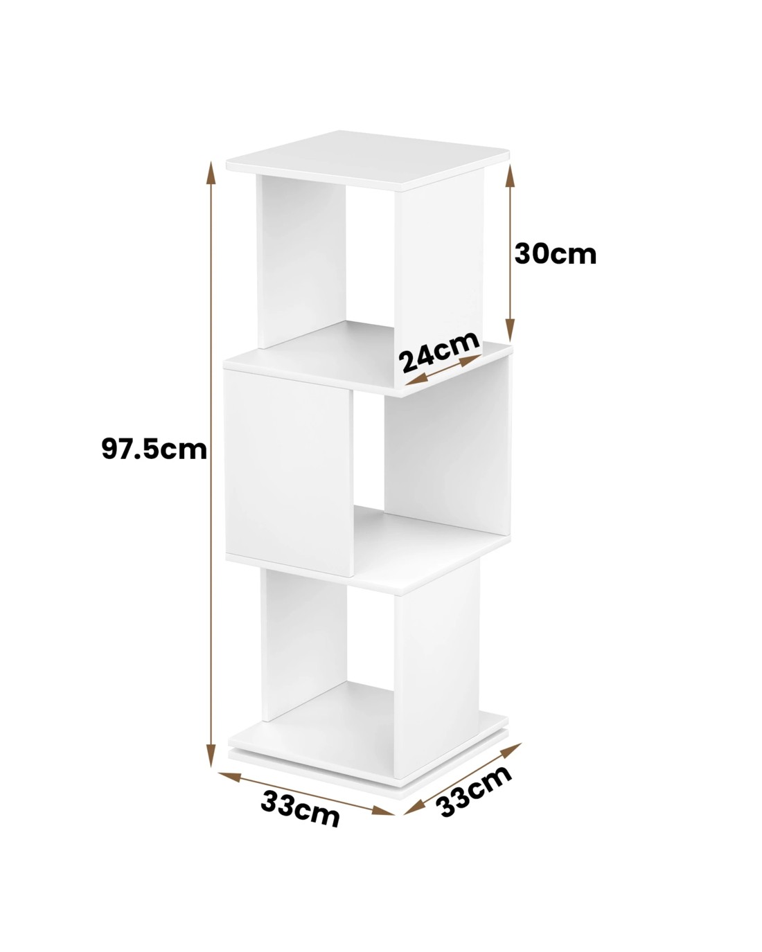Designed for both function and style, it features a smooth rotating base, allowing easy access to your favorite books, toys, or decorations. Its high-capacity design, with multiple tiers and compartments, maximizes vertical space while keeping your room neat and organized. Crafted from durable, high-quality particleboard, this standing turning bookshelf is built to last, with a scratch-resistant, waterproof surface for effortless maintenance. Its versatile and compact design fits seamlessly into bedrooms, living rooms, offices, kids rooms, or studies. Whether you need a storage solution or a decorative piece, this customizable bookcase adapts perfectly to your needs.