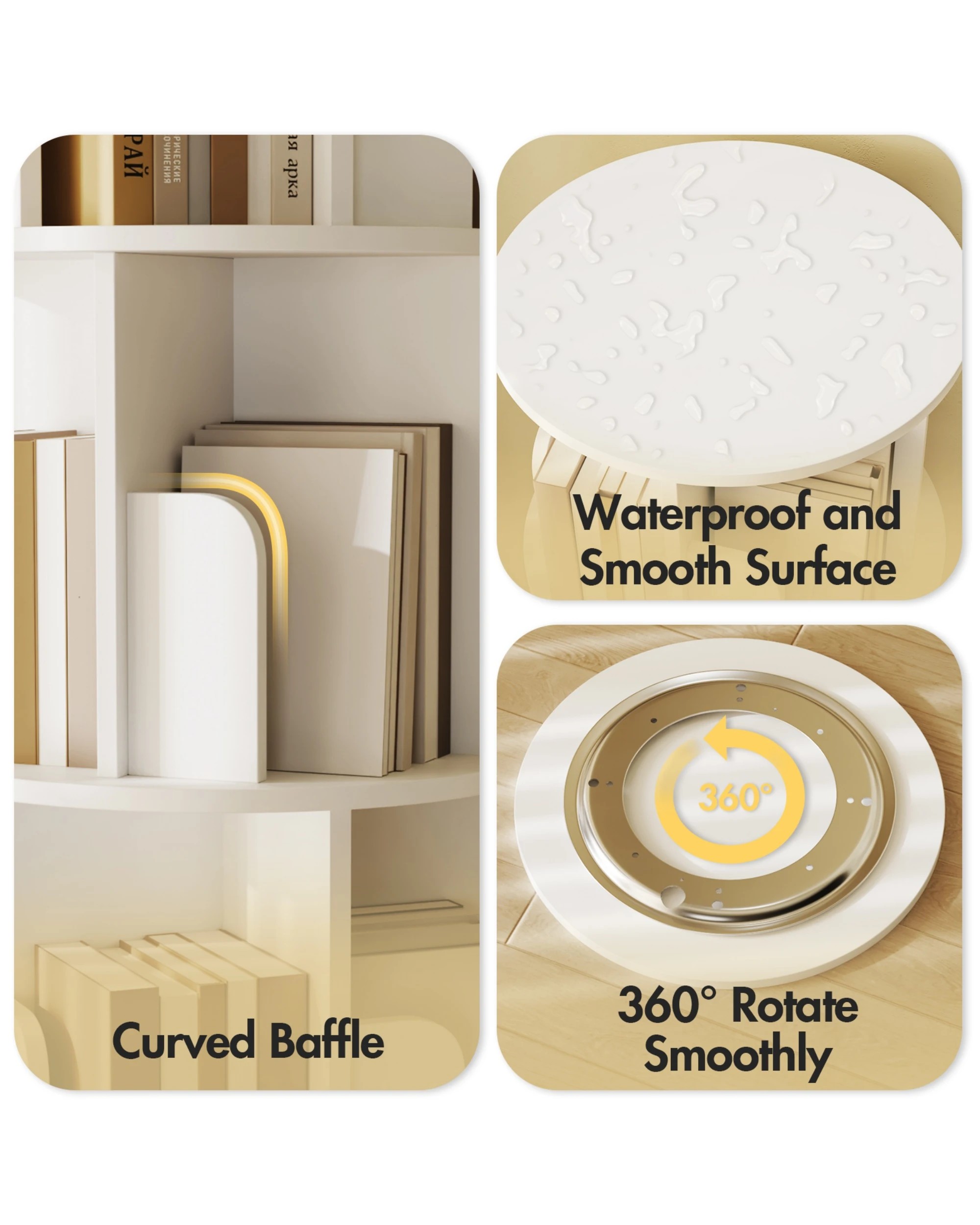 Advwin 3 Tiers Bookshelf Rotating Corner Bookcase Cabinet Revolving Display Stand Rack White