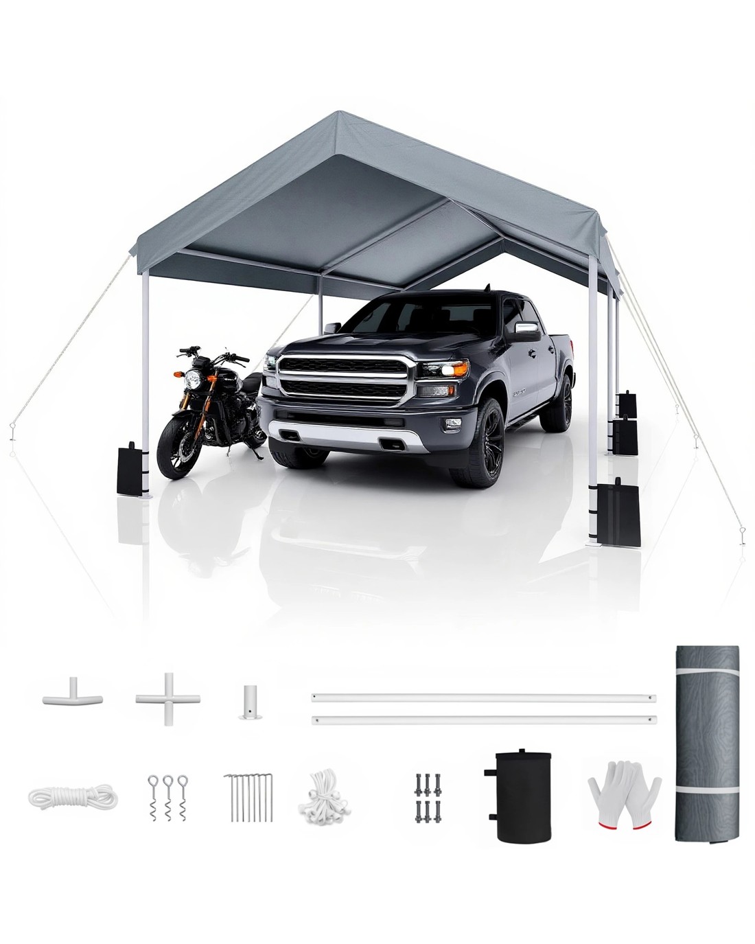 【Open-Sided Design】The open design allows for optimal airflow, keeping the interior cool and providing easy access from any direction. It can be used as a portable garage, car shelter, or garden gazebo for gatherings and social events.