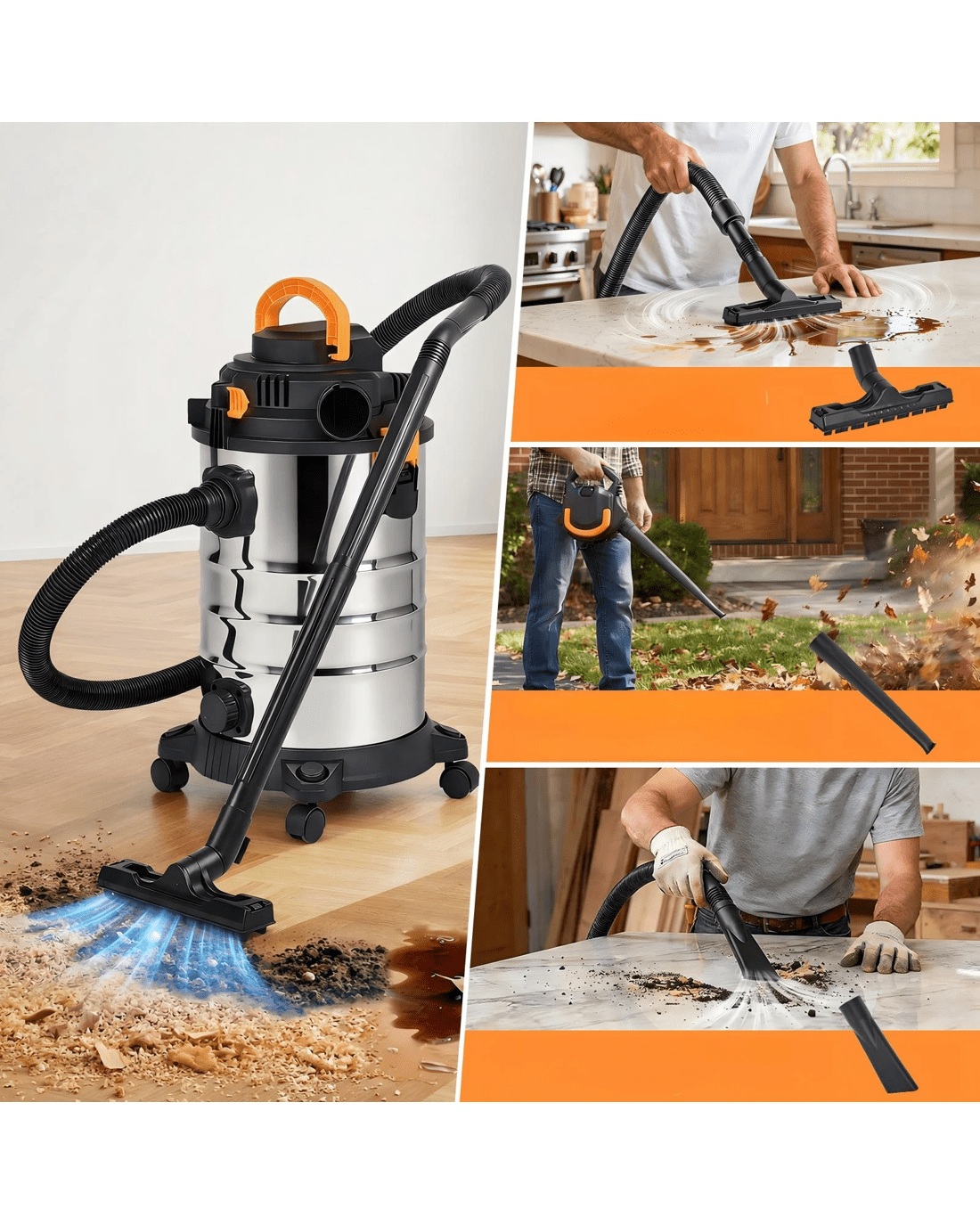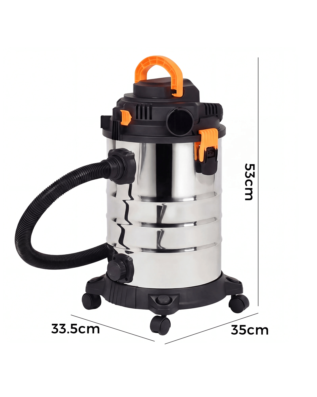 Experience professional-grade cleaning versatility with the Advwin Industrial Wet & Dry Vacuum Cleaner. This robust 1200W powerhouse combines a large 30L capacity with strong 17kPa suction, efficiently handling both wet spills and heavy debris for continuous, large-area cleaning.