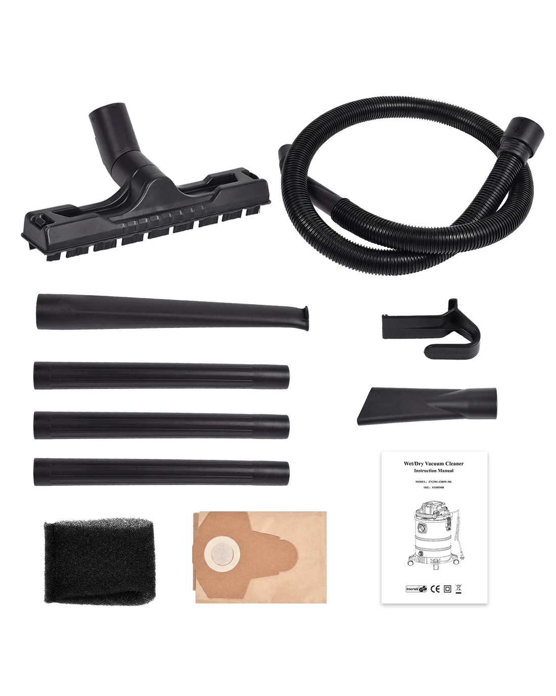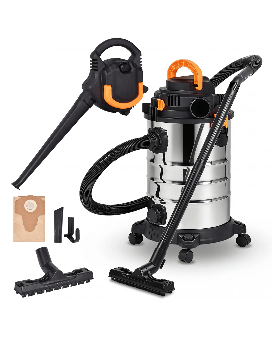 Advwin 30L Wet and Dry Vacuum Cleaner with Handheld Blower Wide and Crevice Nozzle Hose - Silver