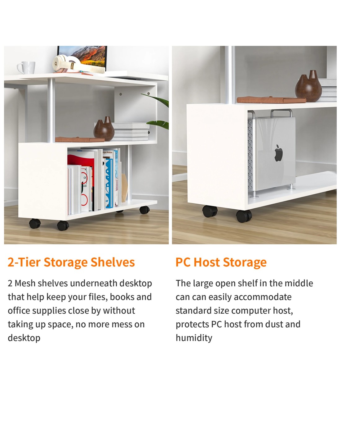 Its S-shaped design shelf can be perfectly hidden under the table top and rotate out when used.