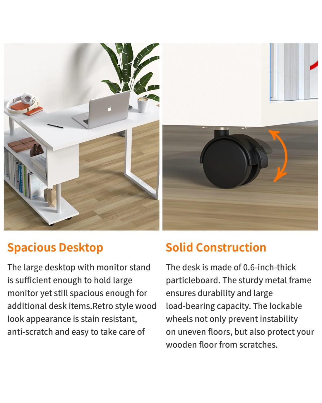 Your computer desk always needs an efficient working space. Simple and practical, this computer desk is undoubtedly the best solution for an efficient working environment. Our computer desk uses high-quality 18mm particleboard countertops. In addition,there is a 360° rotating three-layer shelf, which has enough storage space. The convenient multifunctional computer desk will become your best choice.