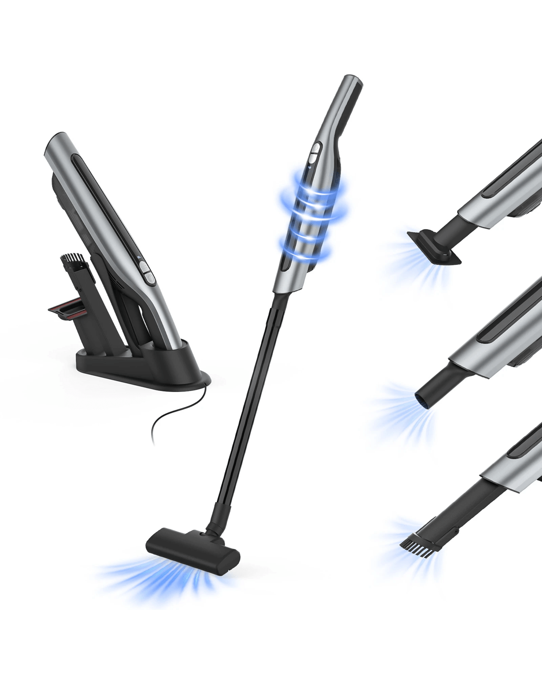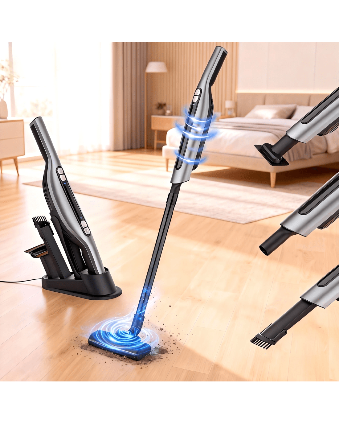 The high-efficiency brushless motor delivers up to 16Kpa suction. Compact enough to store in small spaces, with an LED light for dark spots and a smart charging base to keep everything in place, it’s the perfect cleaning companion for homes, cars, dorms, and busy lives.