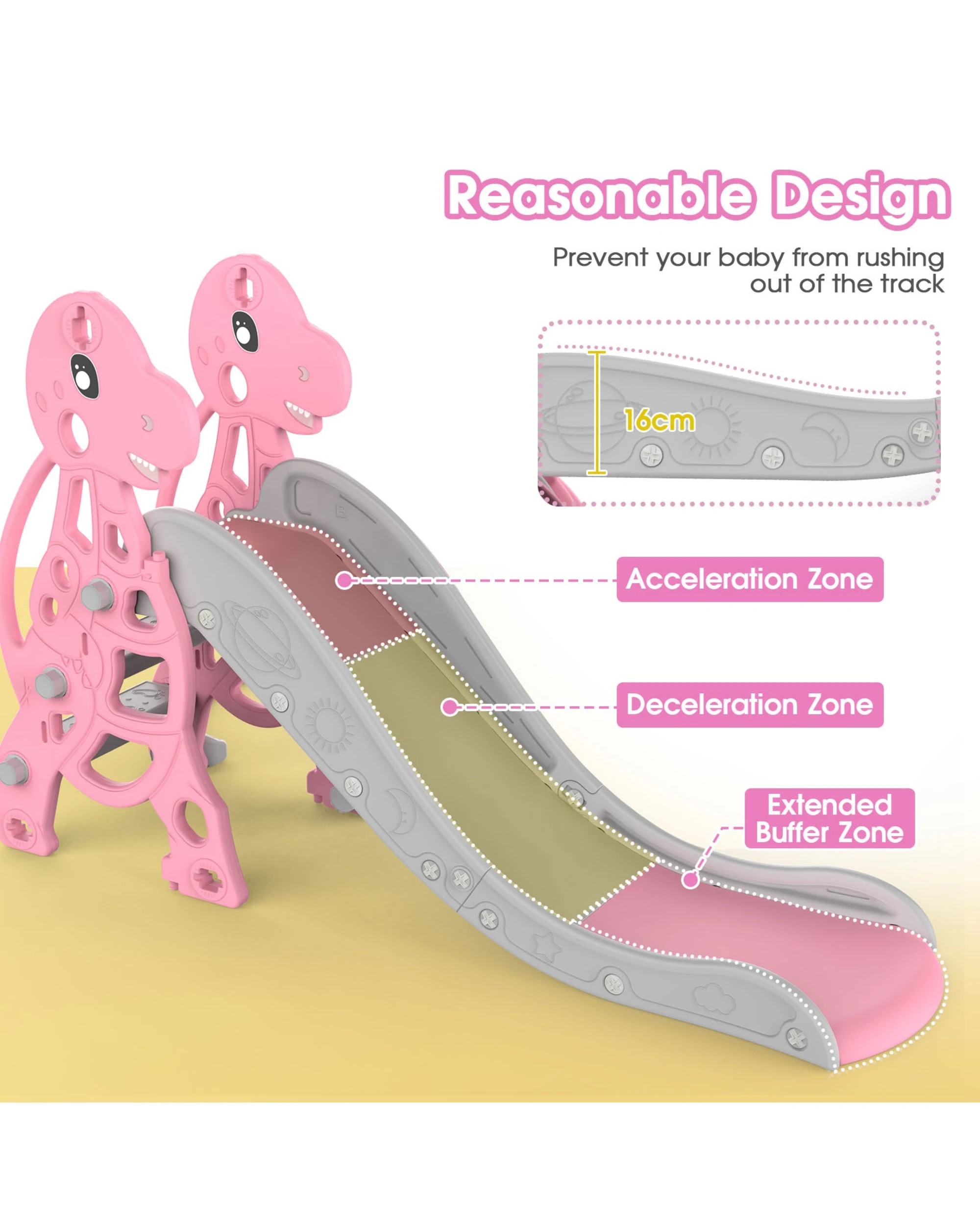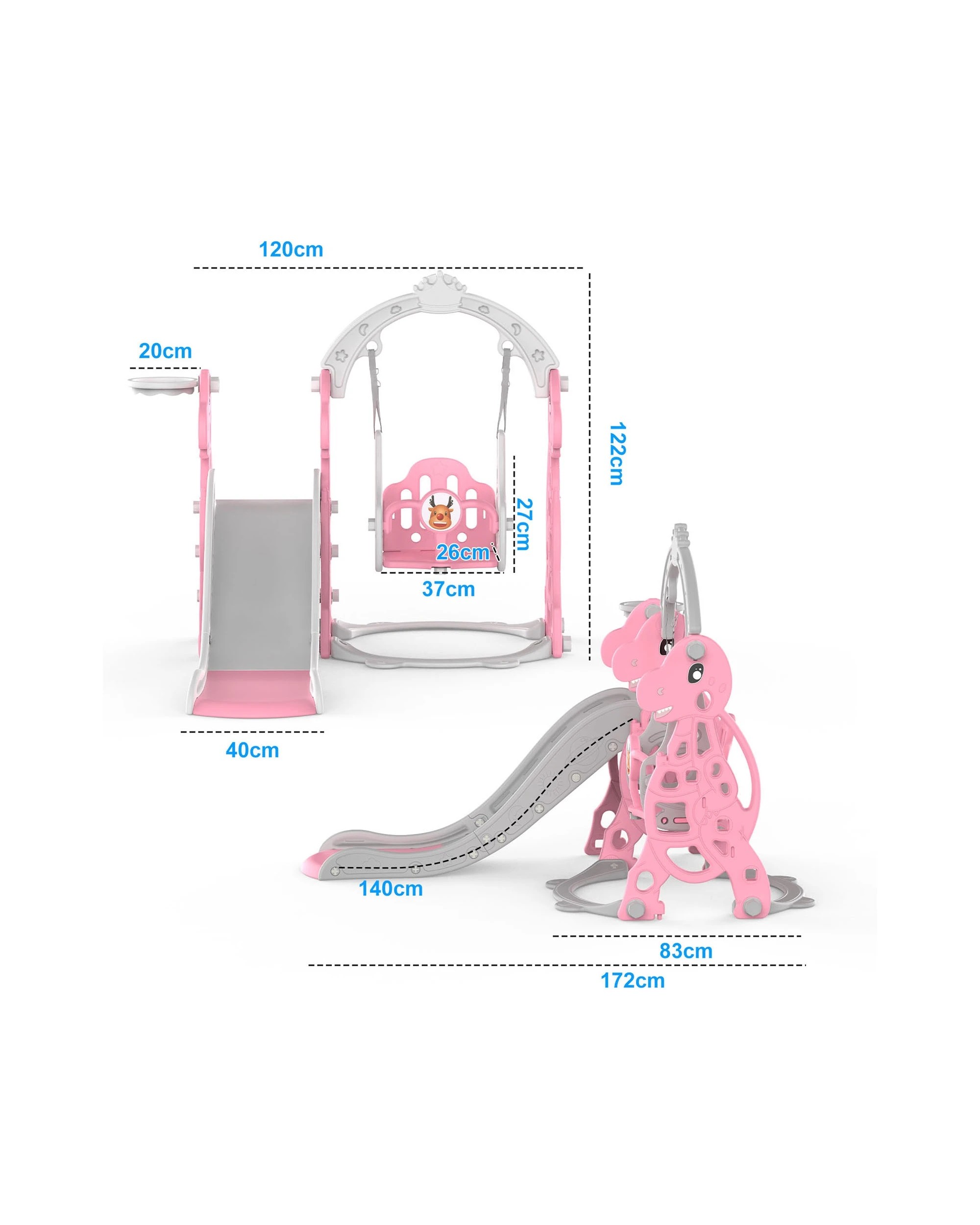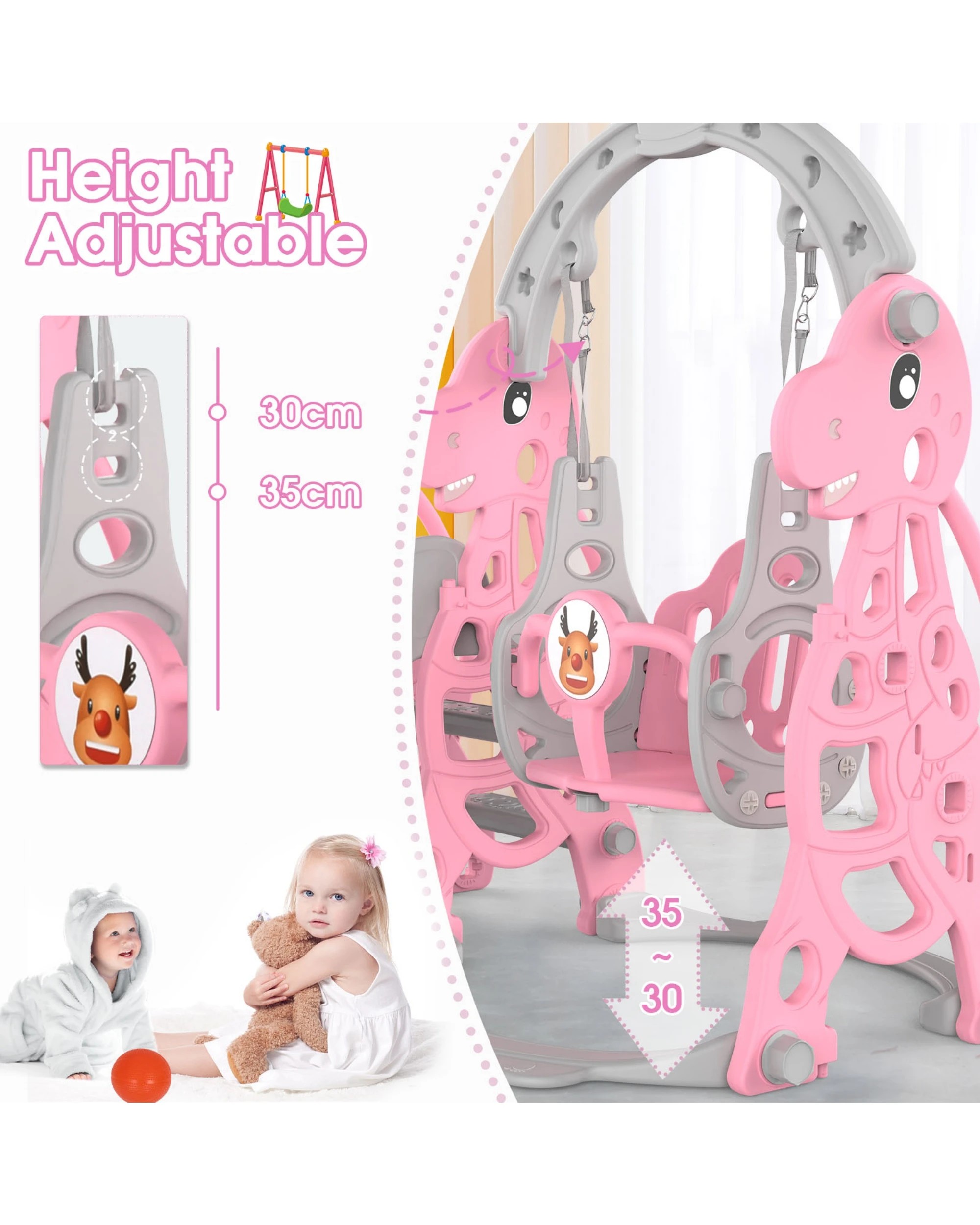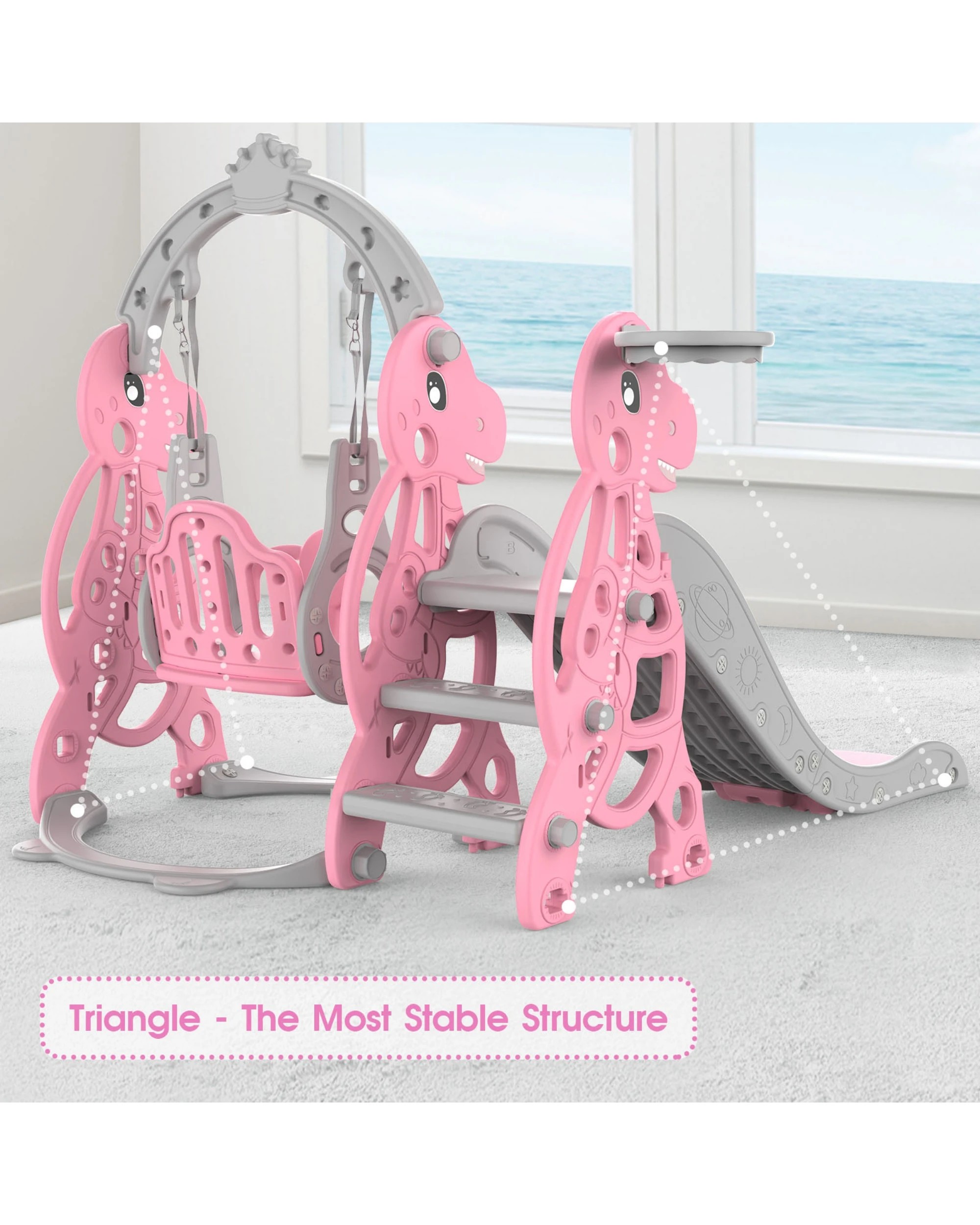 Advwin 4-in-1 Kids Slide Swing Set with Basketball Hoop Pink