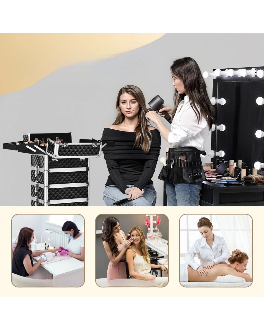 Advwin 4 in 1 Makeup Trolley Case Rolling Large Capacity - Black
