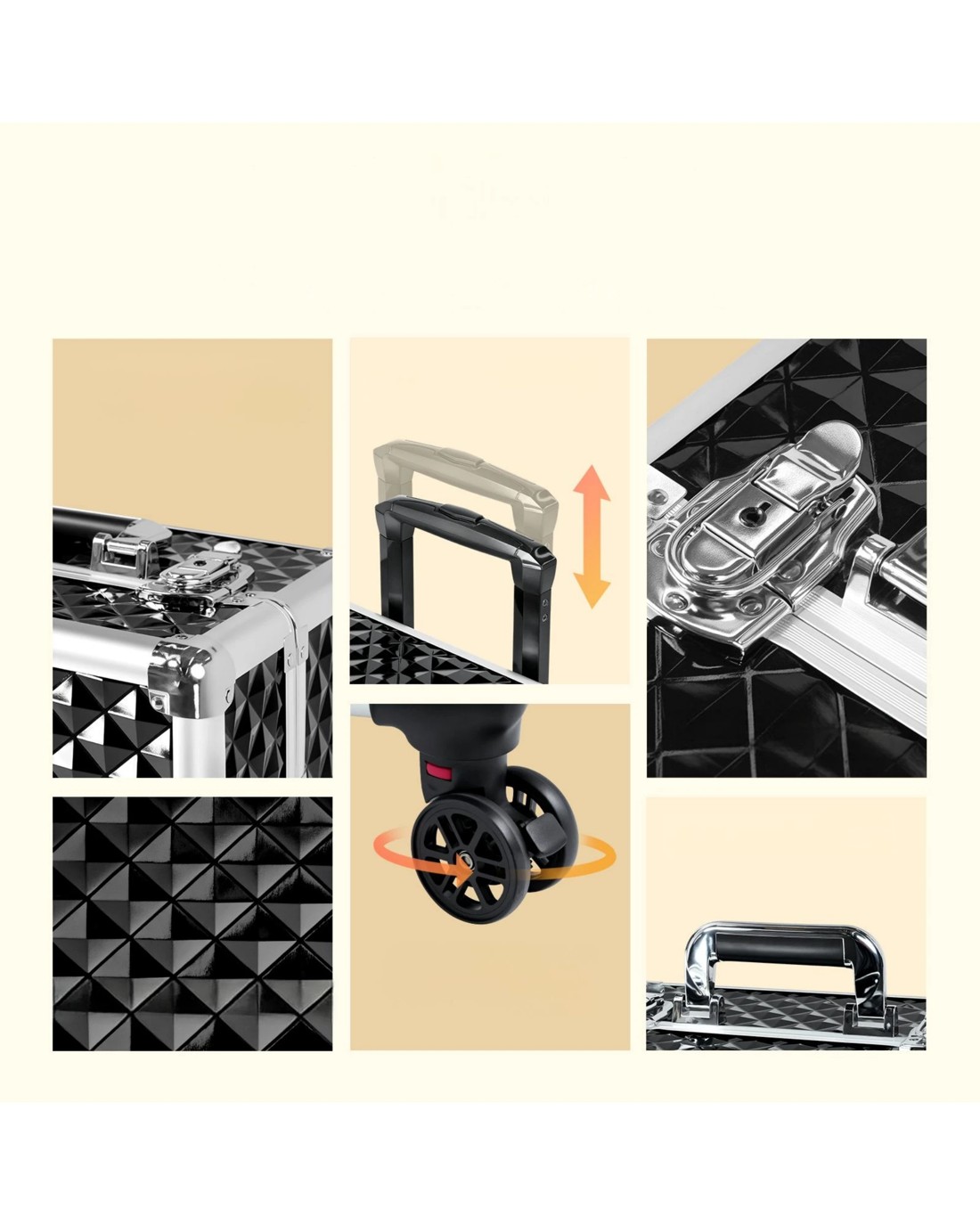 【Chic Appearance & Exquisite Details】This rolling makeup train case has a cool and chic appearance, combining modern minimalist style with diamond texture. This cosmetic case is not only a practical tool, but also a chic accessory that perfectly displays your unique fashion taste. And every corner is well protected with aluminum alloy and high-quality plastic to increase durability and sturdiness.