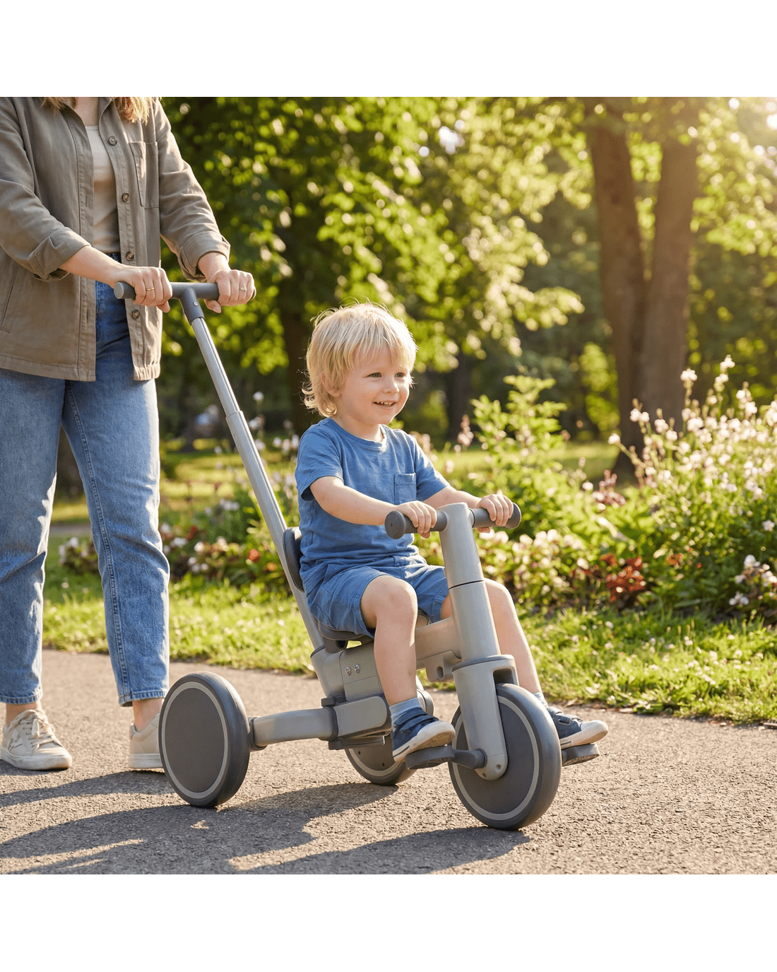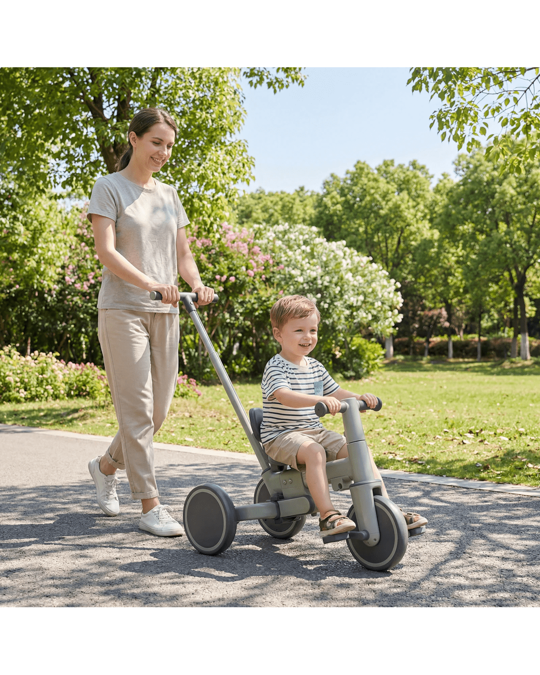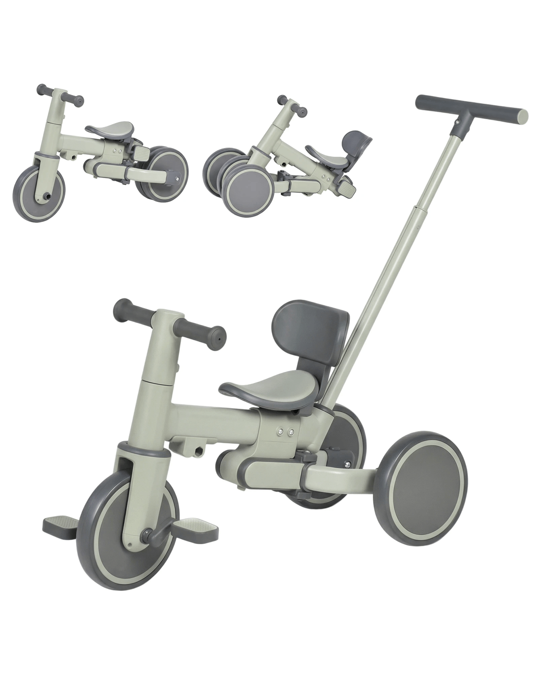 Advwin 5-in-1 Toddler Tricycle with Push Handle Foldable Kids Balance Bike for Boys and Girls - Green