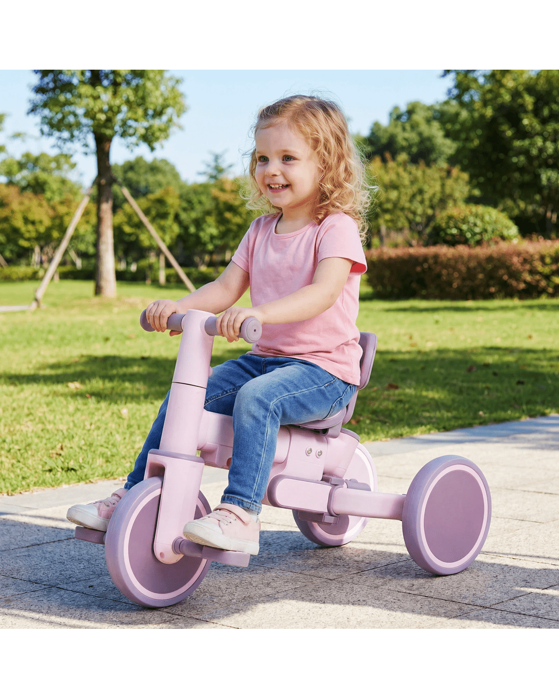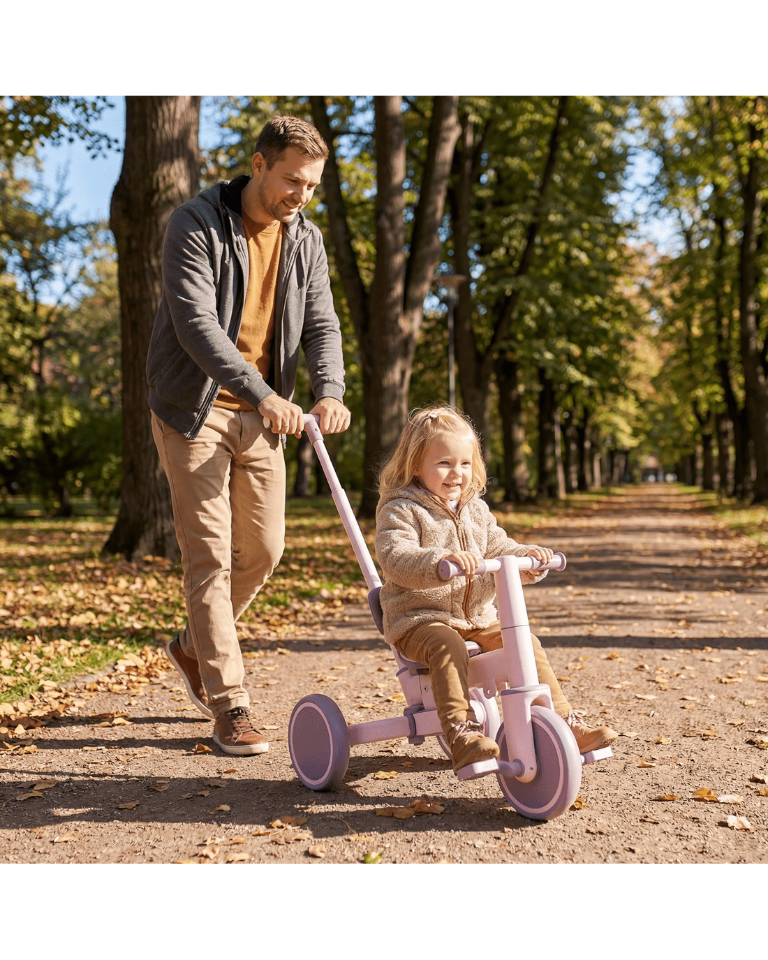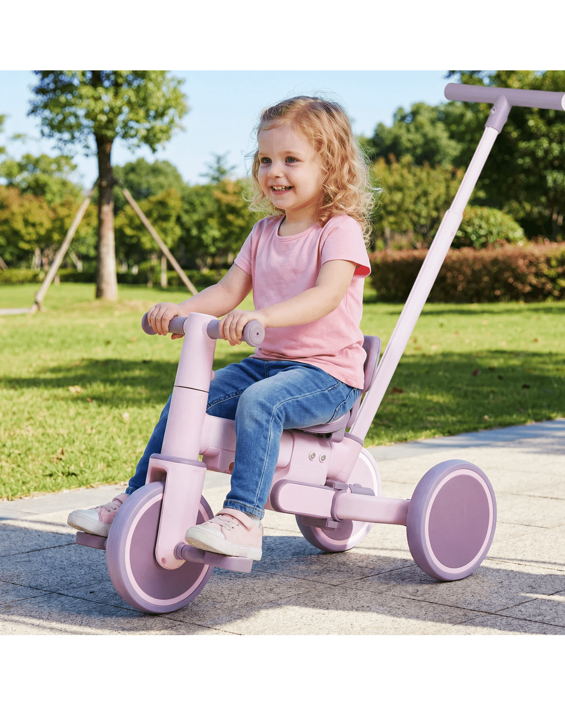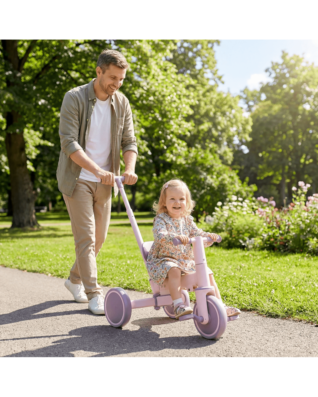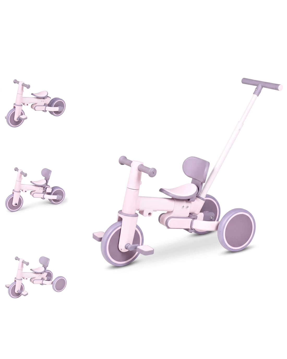Advwin 5-in-1 Toddler Tricycle with Push Handle Foldable Kids Balance Bike for Boys and Girls - Purple