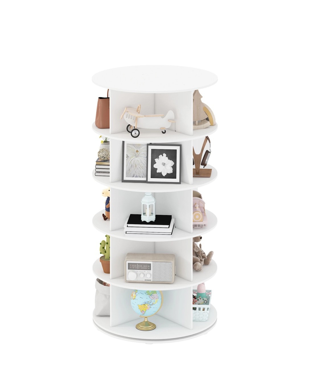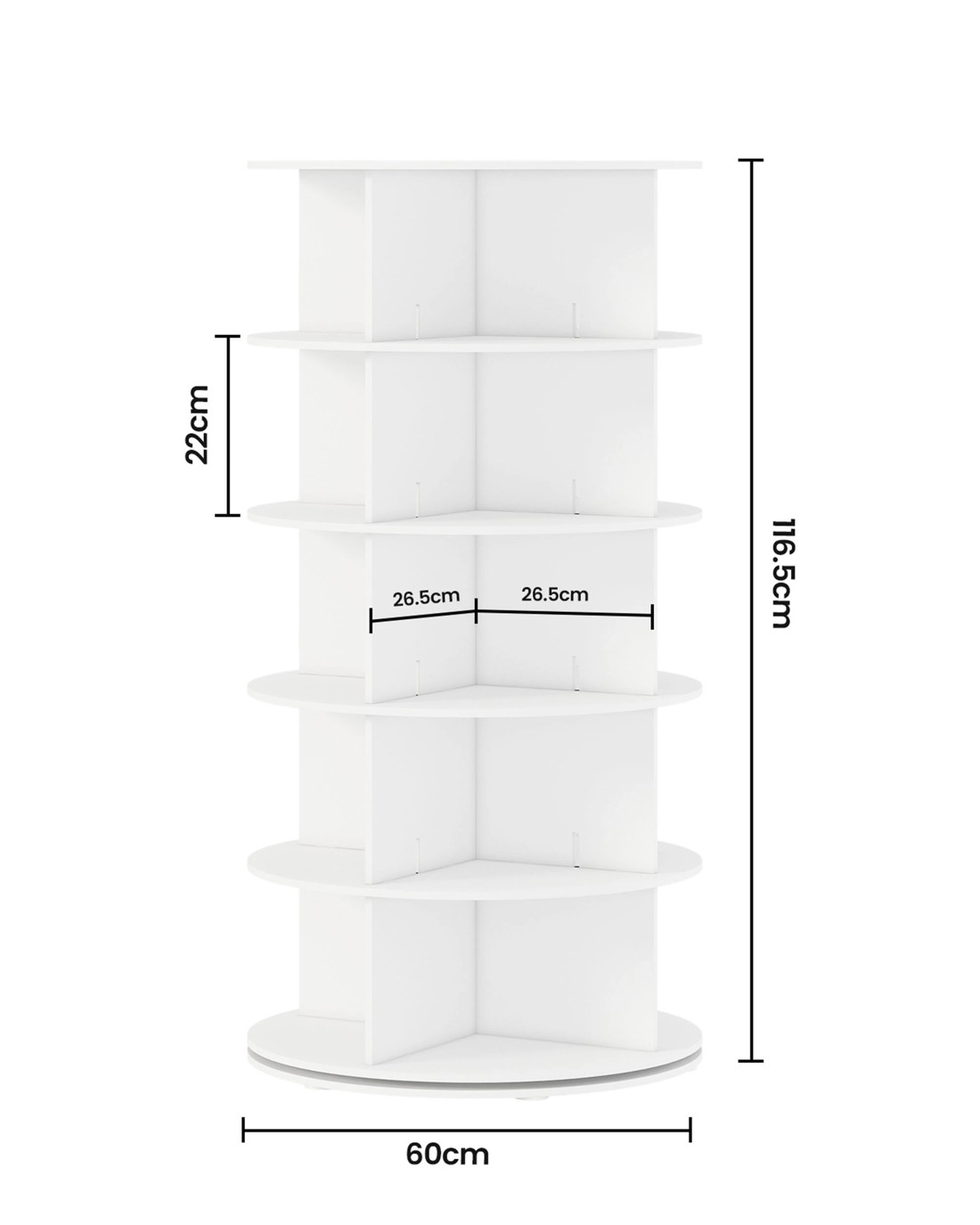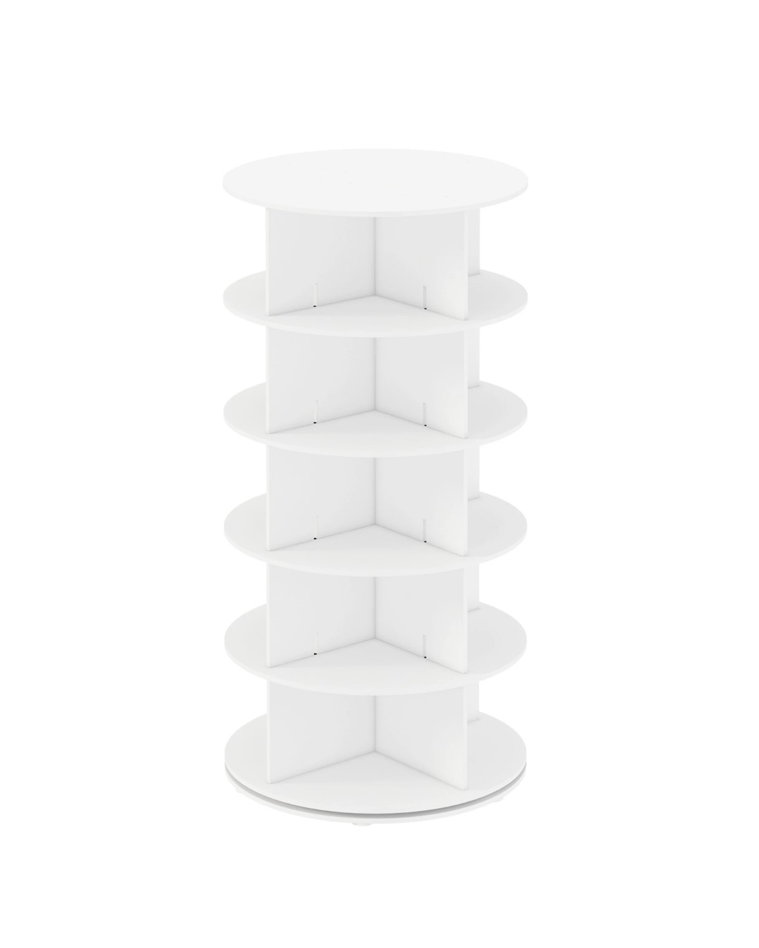Made of durable high-quality PVC wood-plastic board, this vertical rotating display rack is durable, with a waterproof surface and easy maintenance. Whether you need to store shoes, bags, hats or display items, this rotating rack can meet your needs and fits perfectly into the bedroom, living room, cloakroom, office or study.