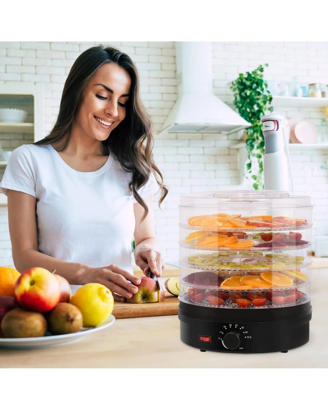 Dehydrating food is an effective way to increase its shelf life. This food dehydrator preserves food by evenly circulating warm air of a fixed controllable temperature inside the appliance to remove moisture content while maintaining nutrients. With the Advwin Fruit Dryer, you can enjoy fruits, vegetables, mushrooms, and more all year long without unhealthy preservatives. You can also dry flowers, medicinal plants, and prepare cereal with the help of this appliance. This Meat Jerky Maker machine has 5 stackable drying shelves. Just cut and place your fruits, vegetables, meat, or more onto the trays set the temperature, and let the machine does its magic.